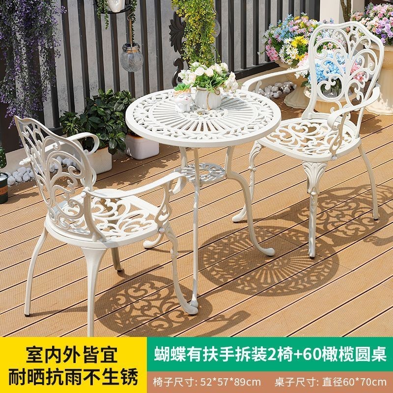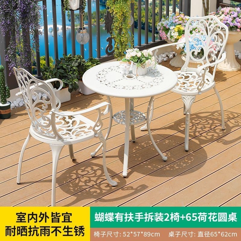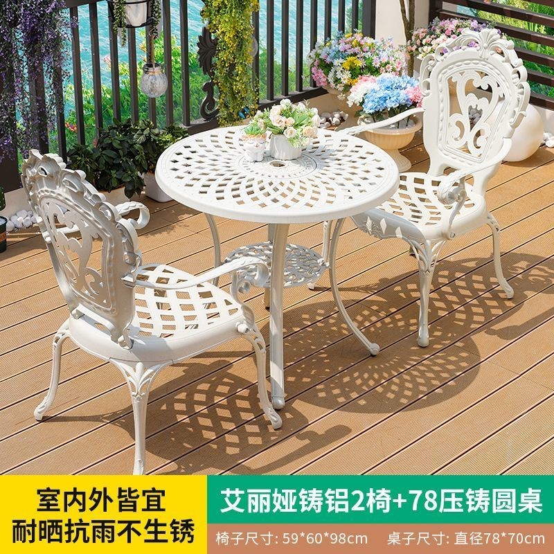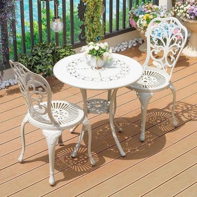 安安家具戶外桌椅 休閒桌椅 庭院桌椅 陽臺小桌椅三件套鑄鋁一桌兩椅休閒庭院花園歐式茶幾桌椅戶外桌椅