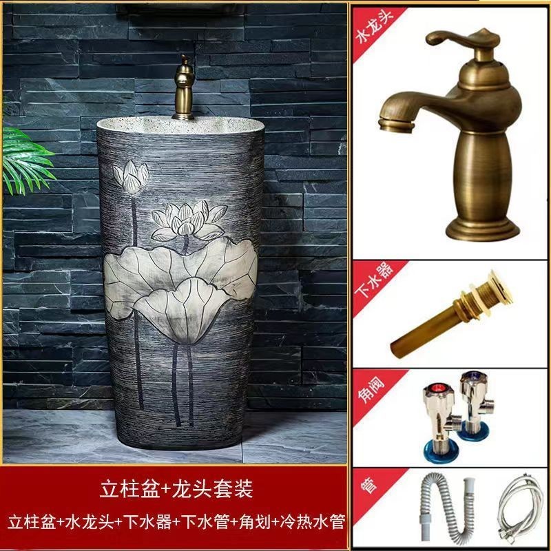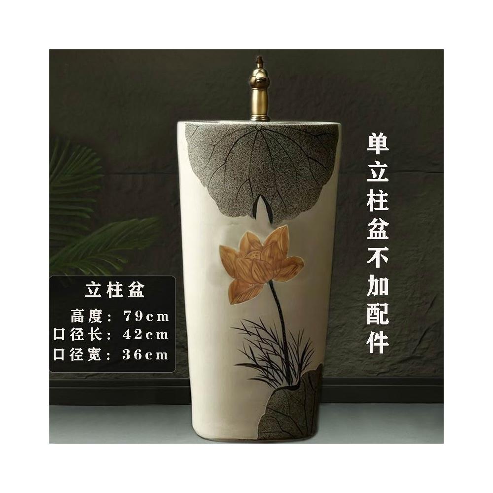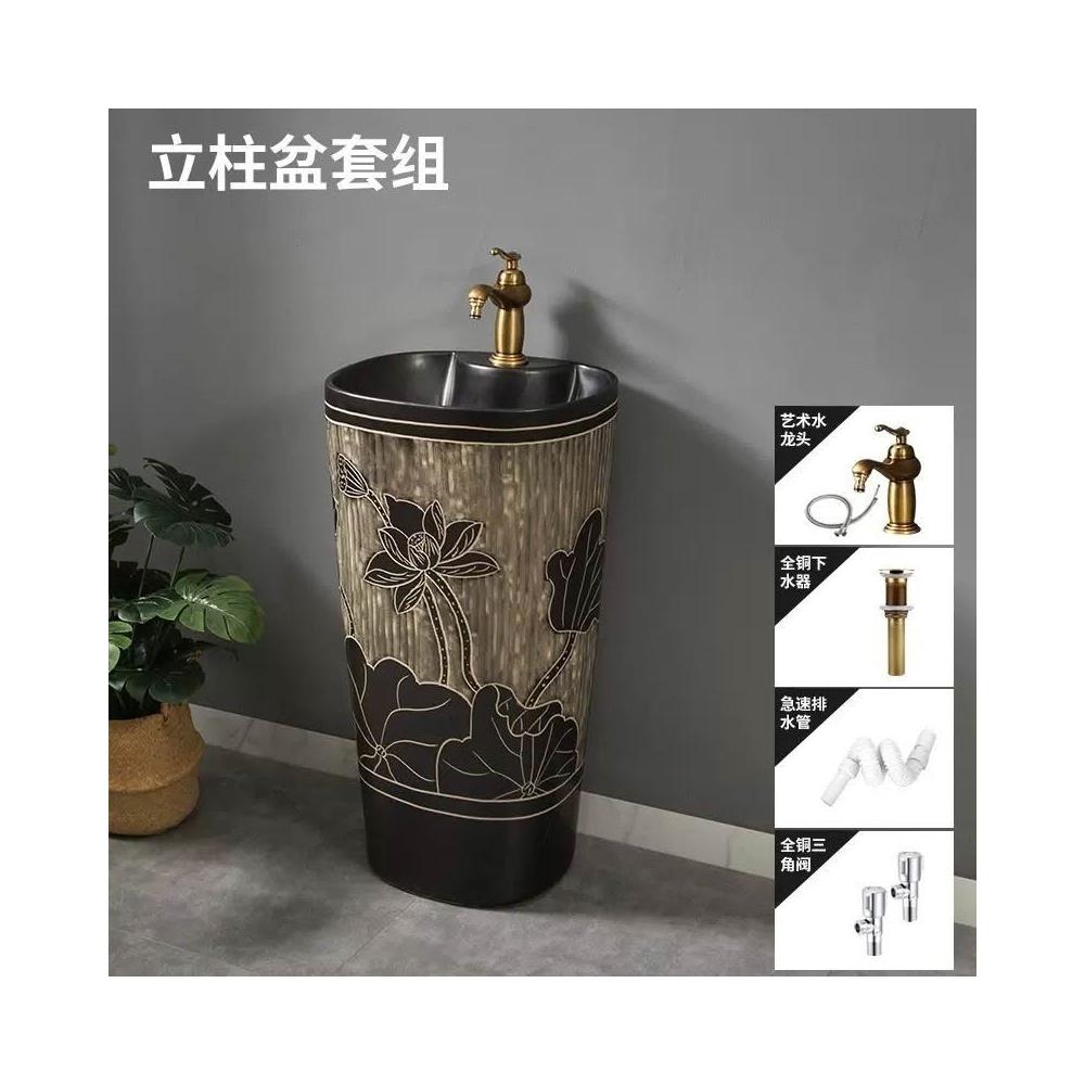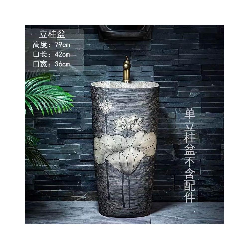 安安家具複古戶外洗手盆 陶瓷洗手臺 庭院立柱盆 落地式花園洗手池 室外洗臉盆 術臺盆 衛生間陽臺