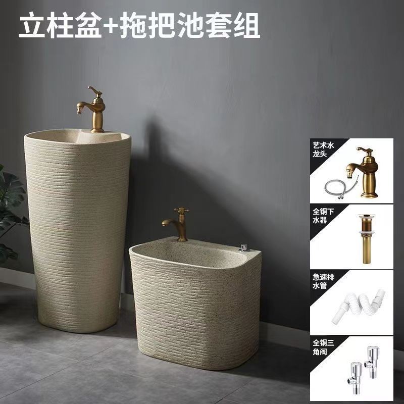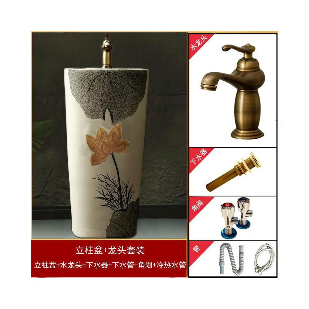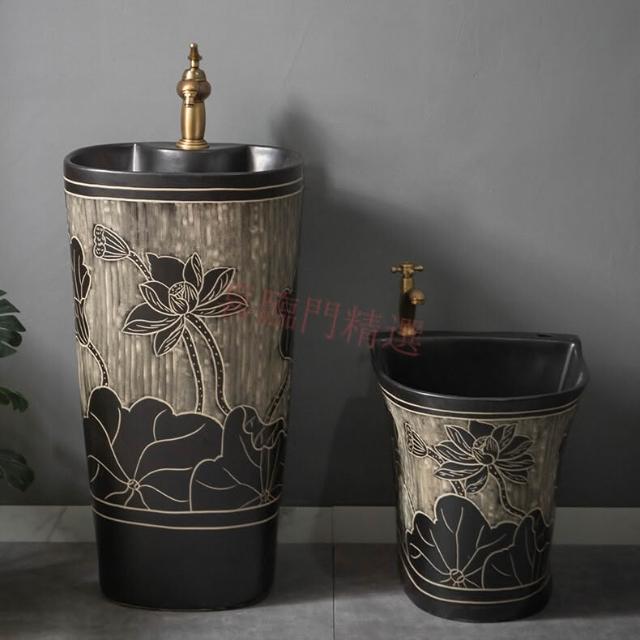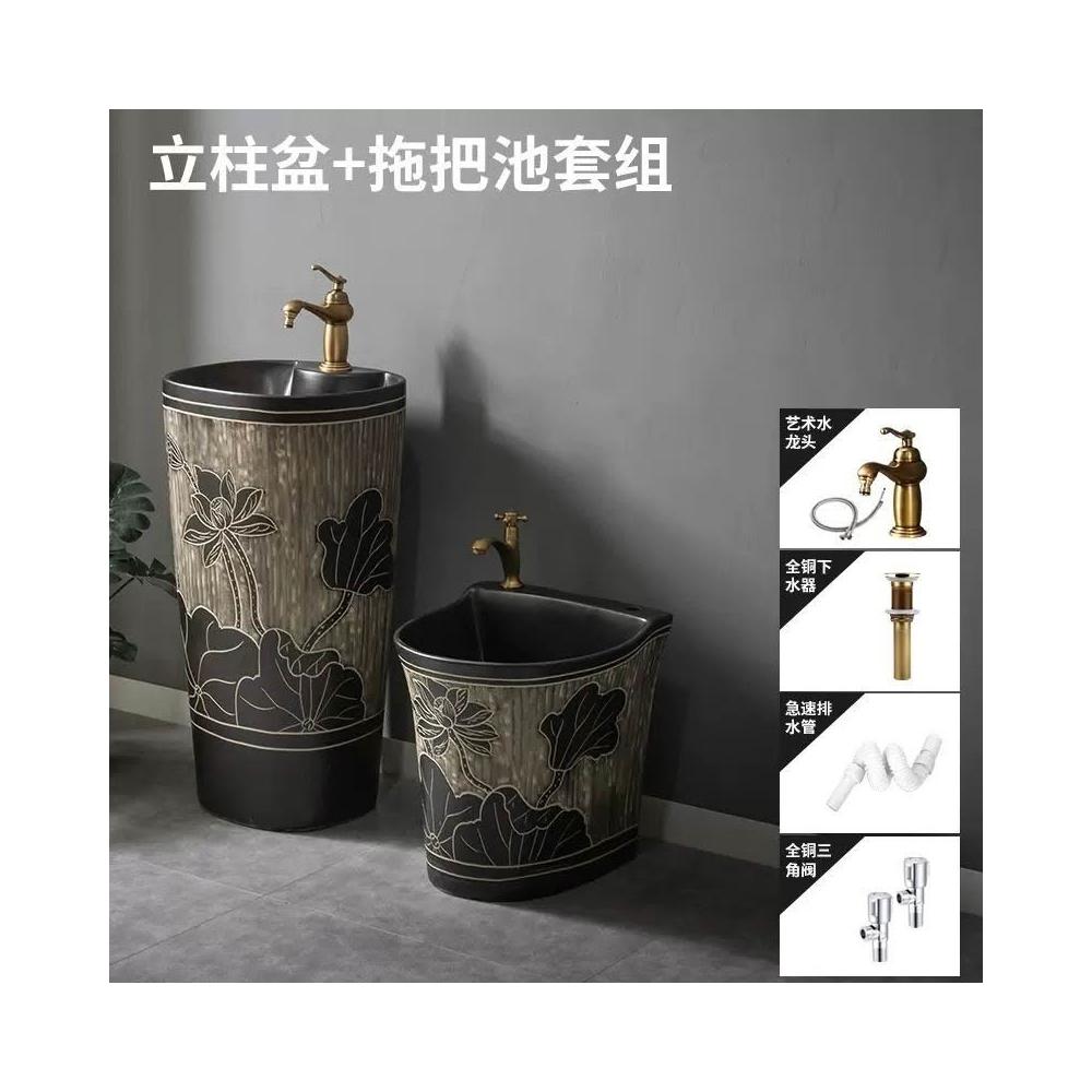 安安家具複古戶外洗手盆 陶瓷洗手臺 庭院立柱盆 落地式花園洗手池 室外洗臉盆 術臺盆 衛生間陽臺