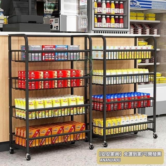 安安家具超市零食貨架 網紅飲料小食品玩具展示架 便利店收銀臺多層置物架子 廚房收納架 蔬果零食收納筐 多層收納推車