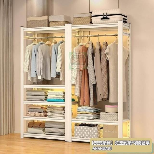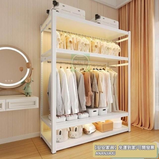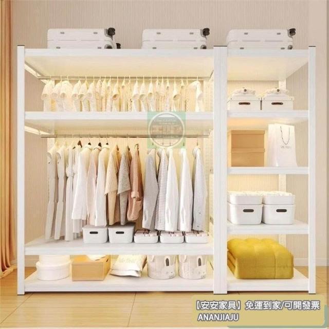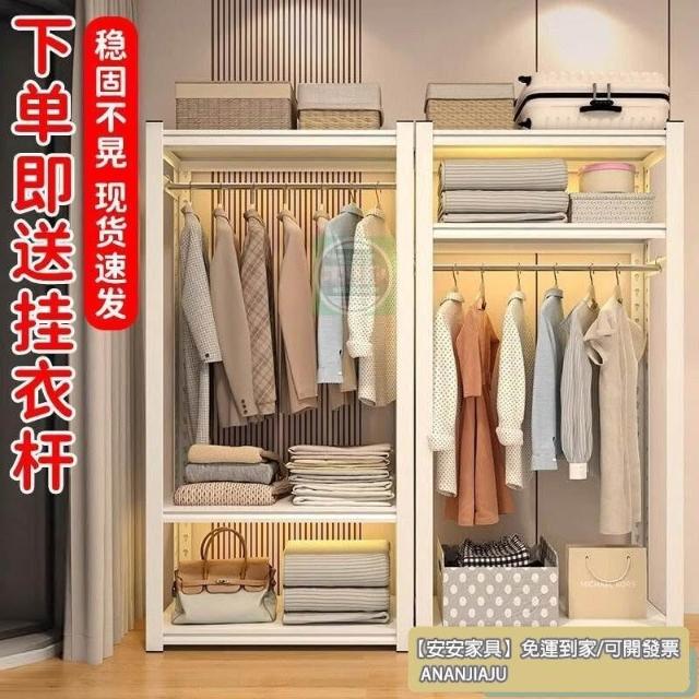 安安家具貨架衣櫃 自製衣帽間置物架 開放式家用落地式掛衣架 出租屋簡易鐵架 掛衣架