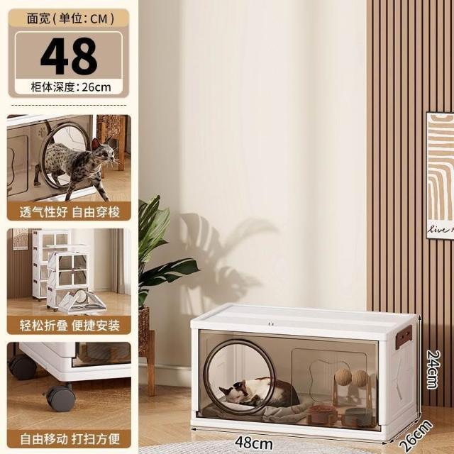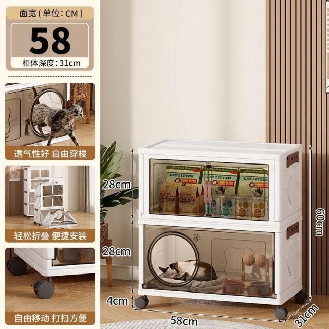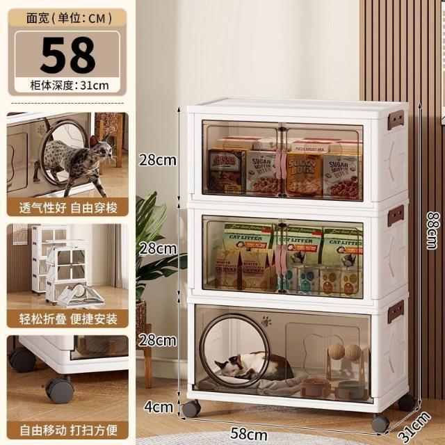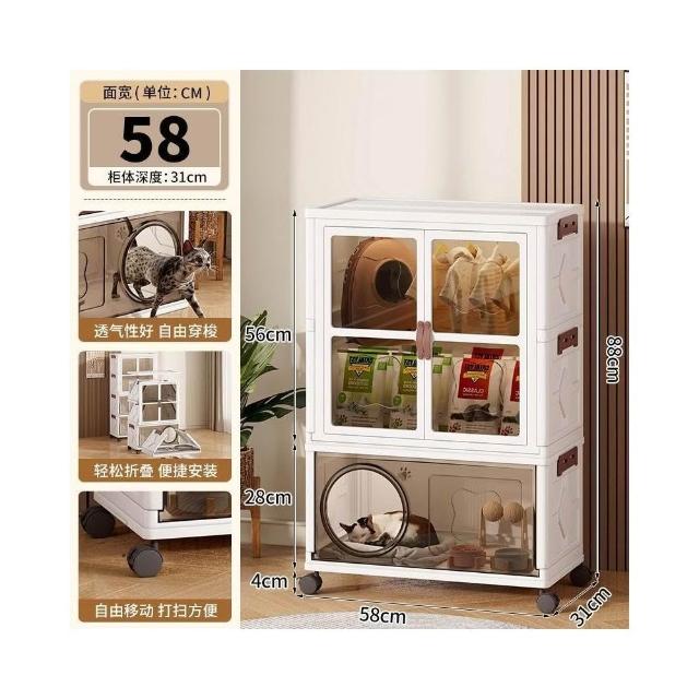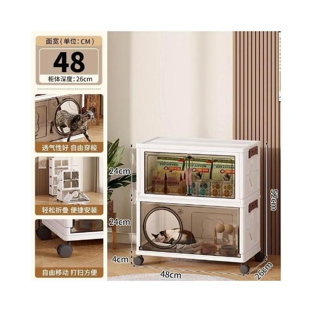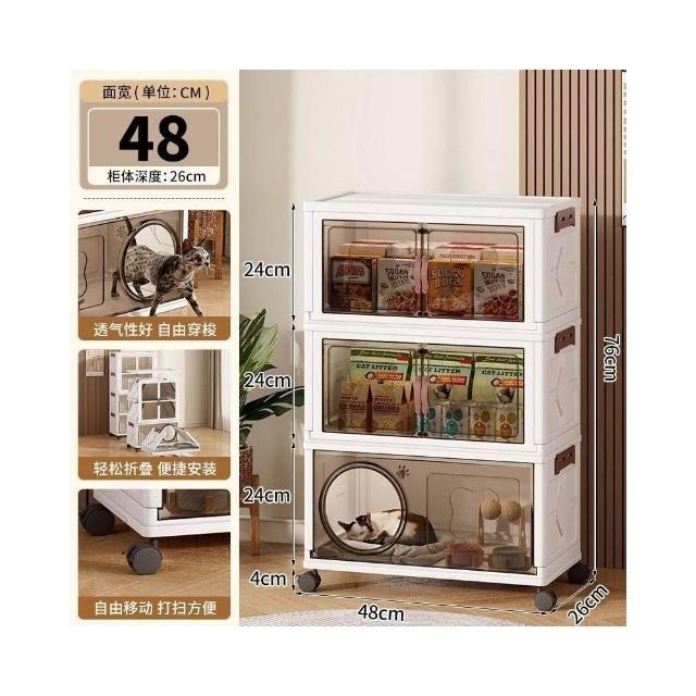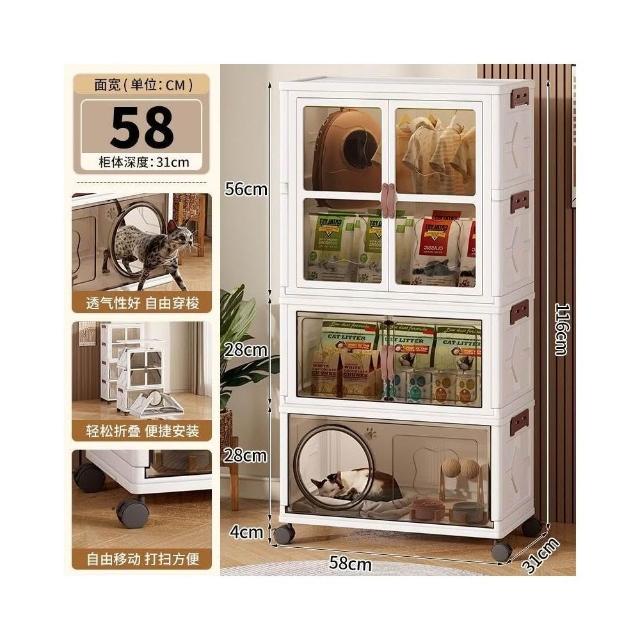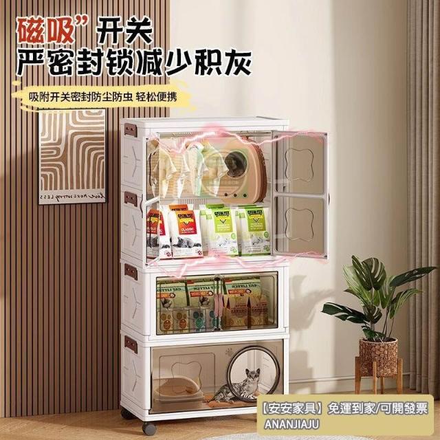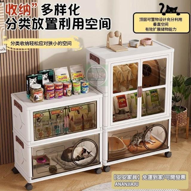 安安家具高顔值傢用半封閉多功能睡覺貓屋貓咪零食玩具通用塑料折疊貓窩 折疊收納櫃 寵物用品收納櫃 零食收納櫃