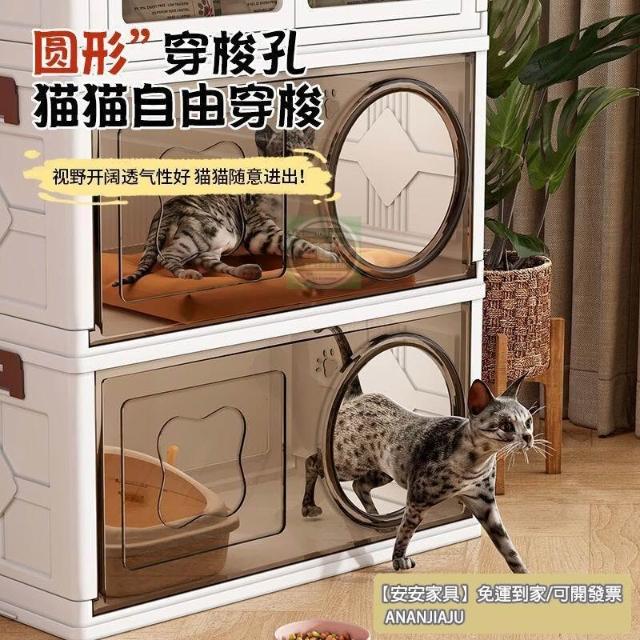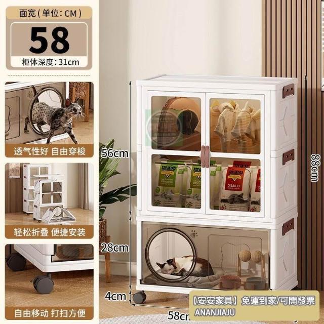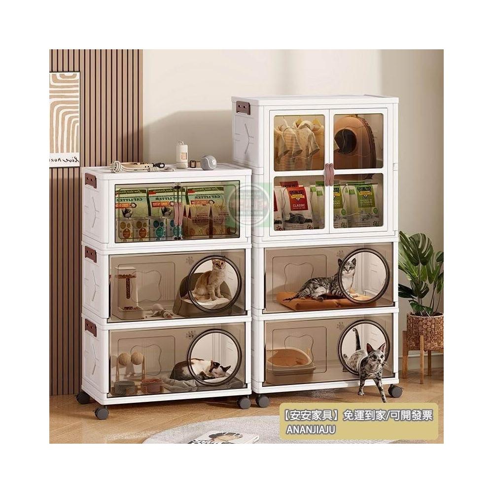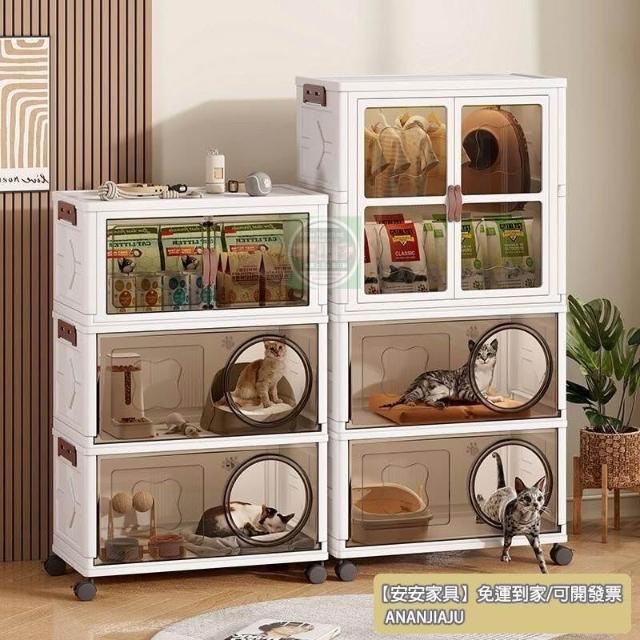 安安家具高顔值傢用半封閉多功能睡覺貓屋貓咪零食玩具通用塑料折疊貓窩 折疊收納櫃 寵物用品收納櫃 零食收納櫃