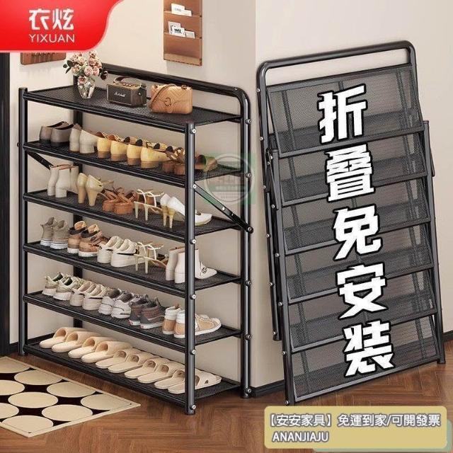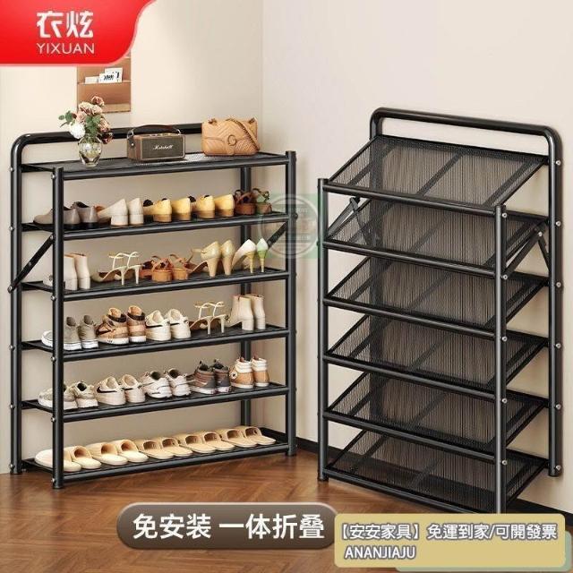 安安家具❤鞋架多層家用門口防塵摺疊免安裝入戶門簡易出租房用鐵藝窄鞋櫃