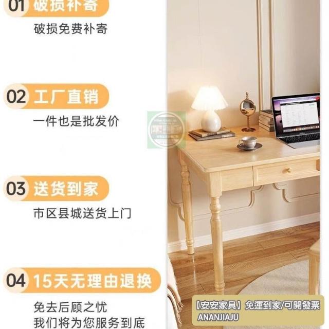 安安家具實木美式書桌 小戶型傢用學生學習桌 簡約複古辦公桌 臥室書房寫字桌 電腦桌 桌子 臥室桌子 化妝臺 書桌