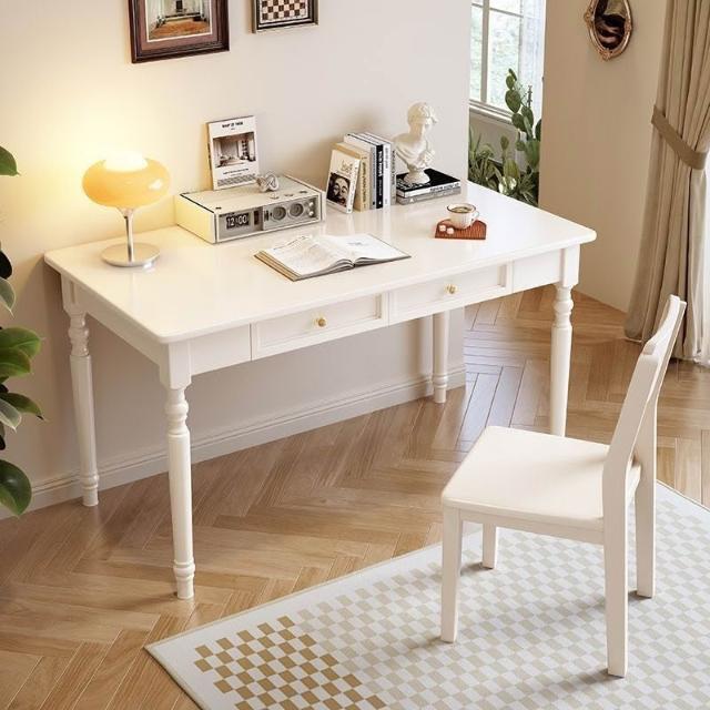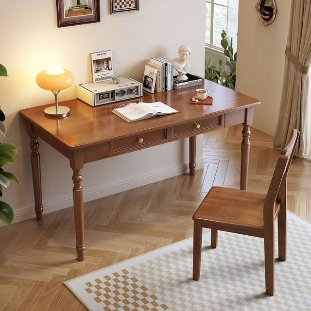 安安家具實木美式書桌 小戶型傢用學生學習桌 簡約複古辦公桌 臥室書房寫字桌 電腦桌 桌子 臥室桌子 化妝臺 書桌