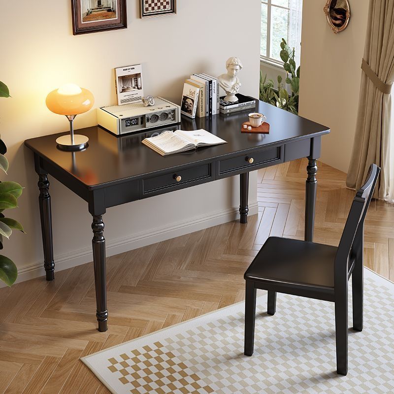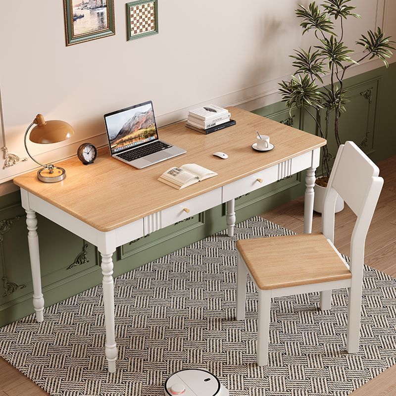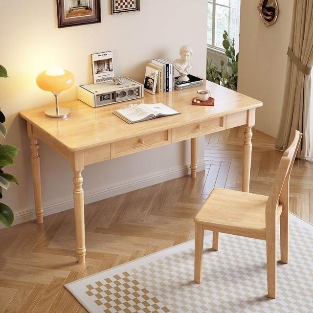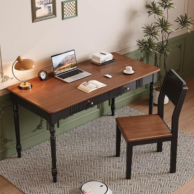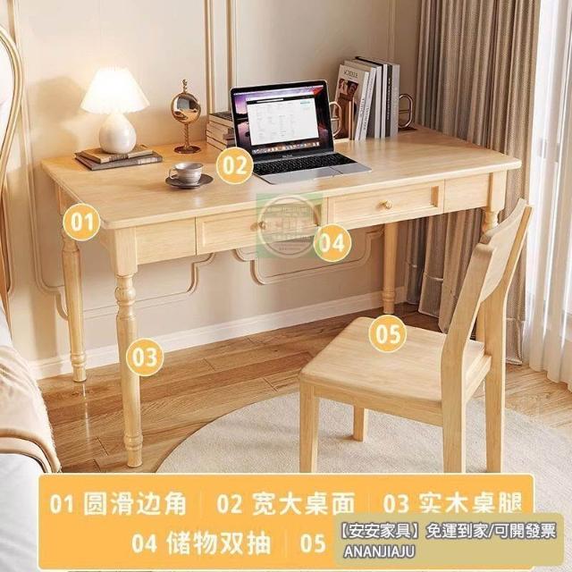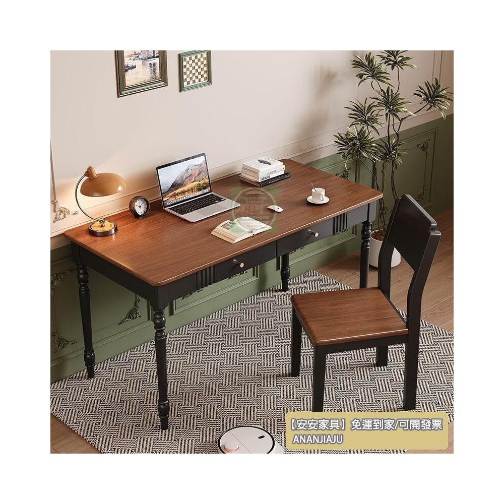 安安家具實木美式書桌 小戶型傢用學生學習桌 簡約複古辦公桌 臥室書房寫字桌 電腦桌 桌子 臥室桌子 化妝臺 書桌