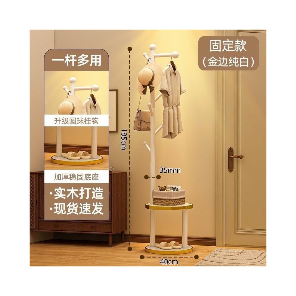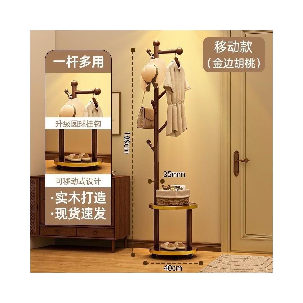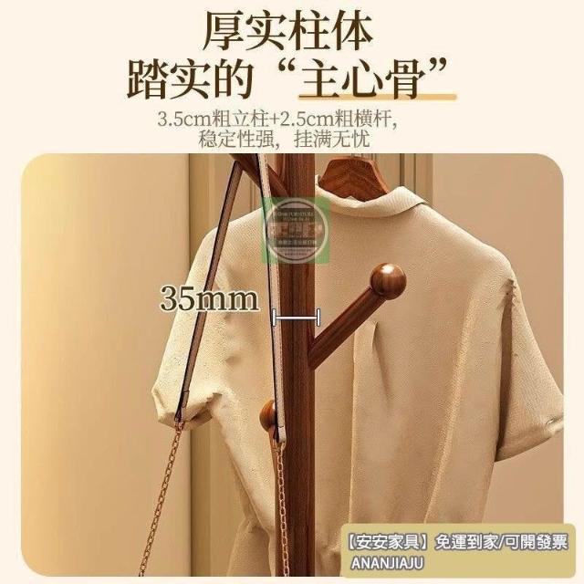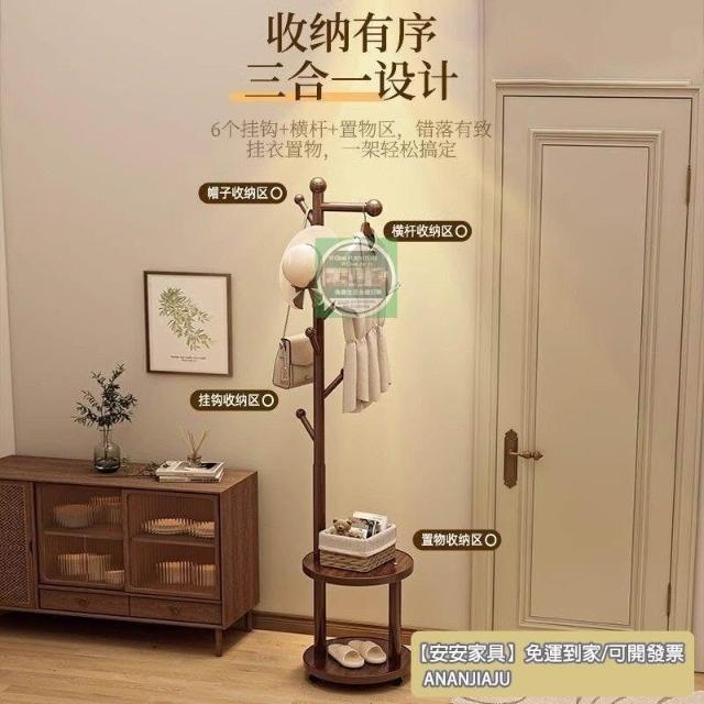 安安家具實木衣帽架 落地床頭櫃 衣架一體傢用臥室置物架 立式簡易衣服掛衣架 衣帽架 掛衣架 晾衣架 曬衣架
