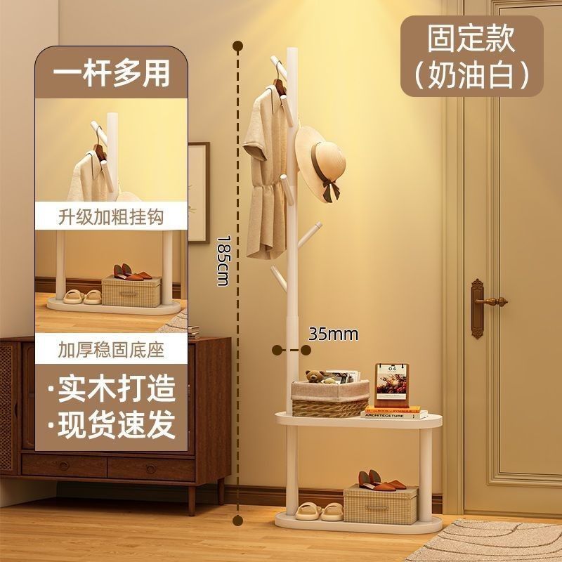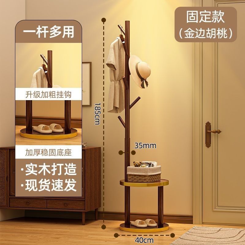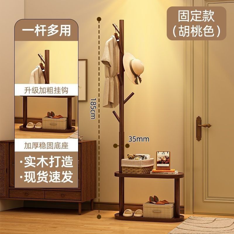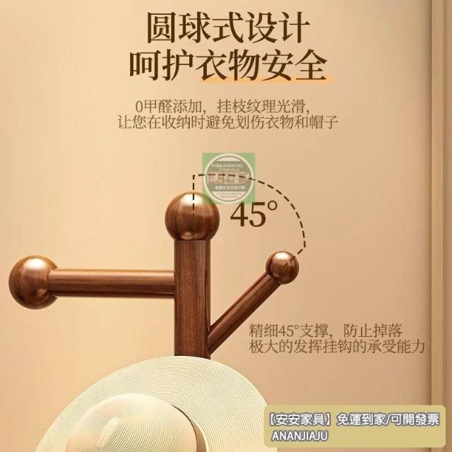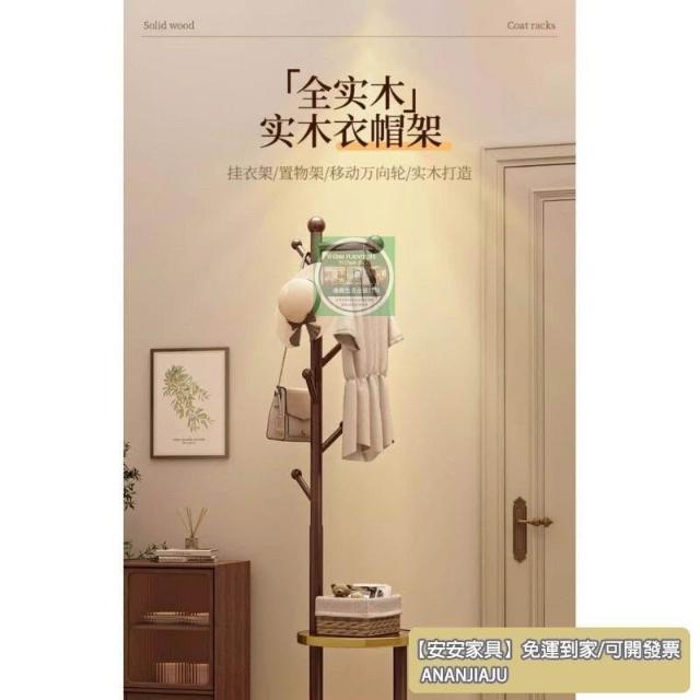 安安家具實木衣帽架 落地床頭櫃 衣架一體傢用臥室置物架 立式簡易衣服掛衣架 衣帽架 掛衣架 晾衣架 曬衣架