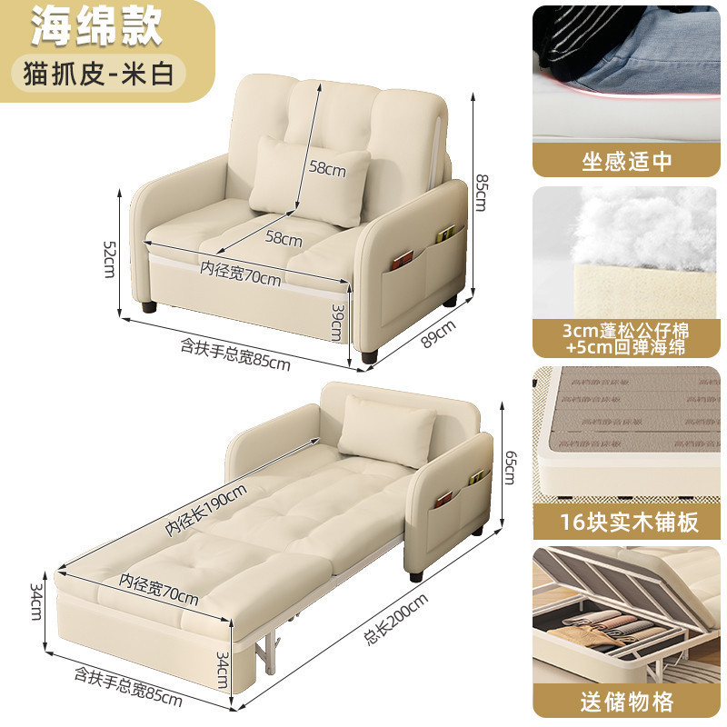 安安家具折疊沙發床 雲朵沙發 伸縮兩用 小戶型客廳 雙人多功能 可拆洗設計 抽拉床 貓抓布耐磨 防潑水 2025新款