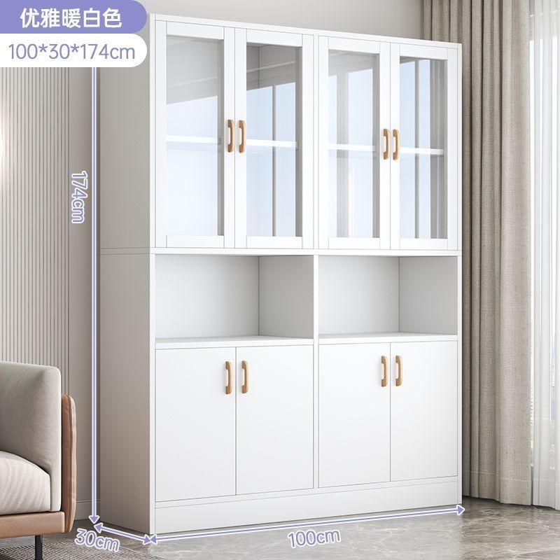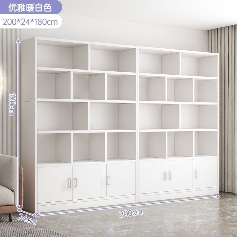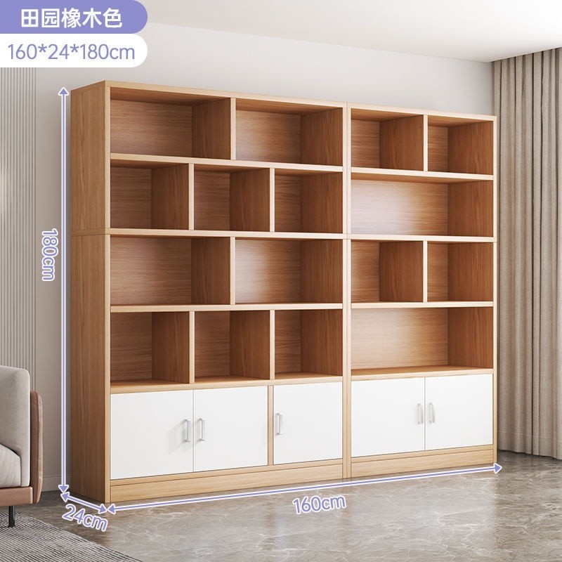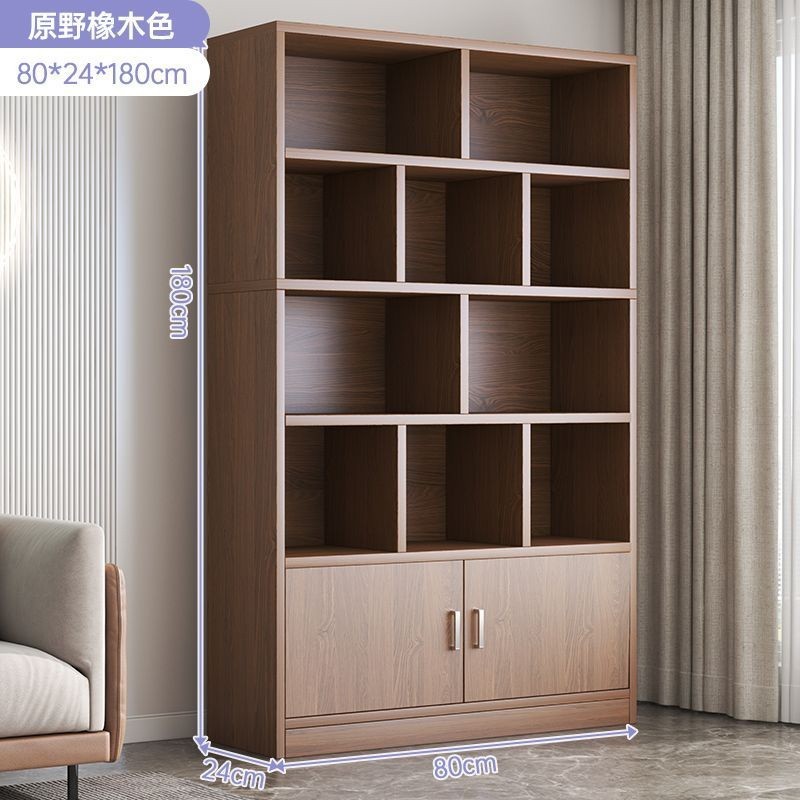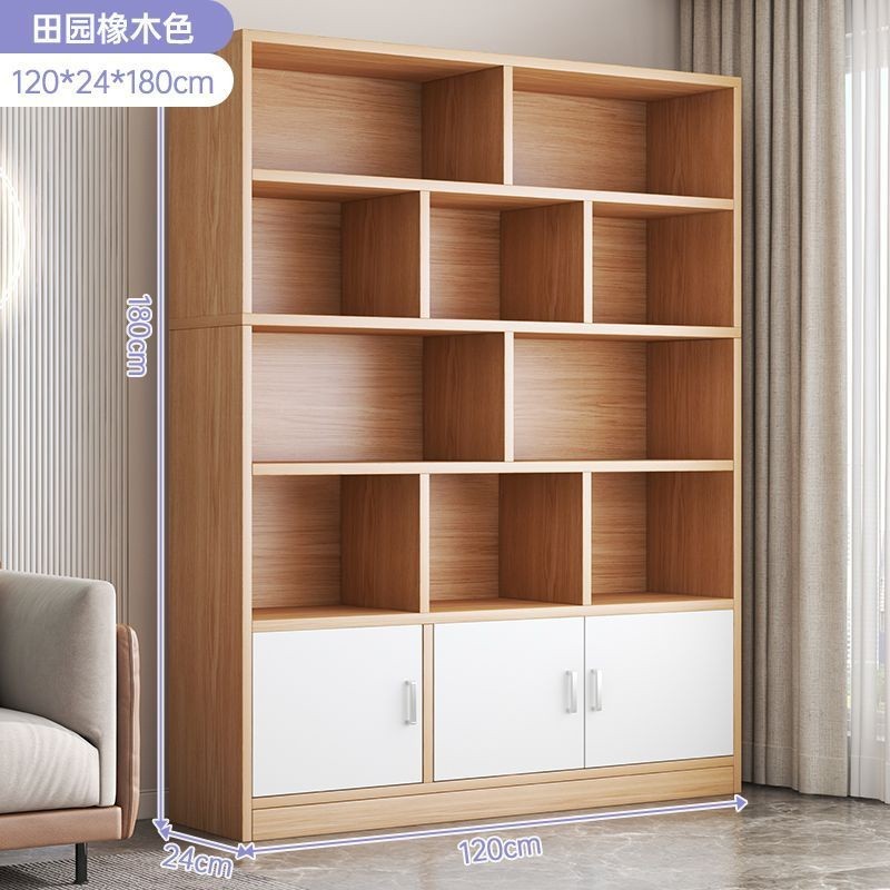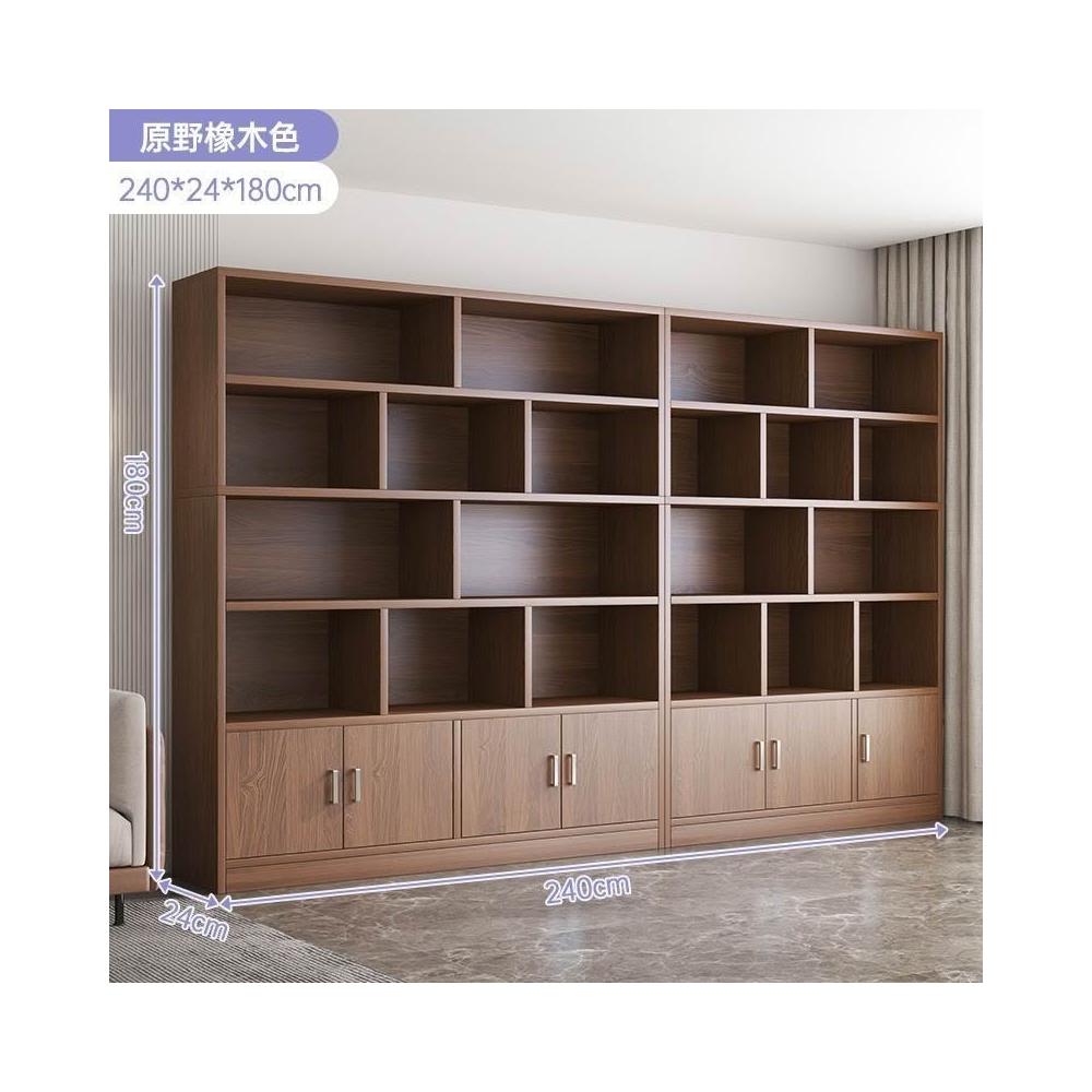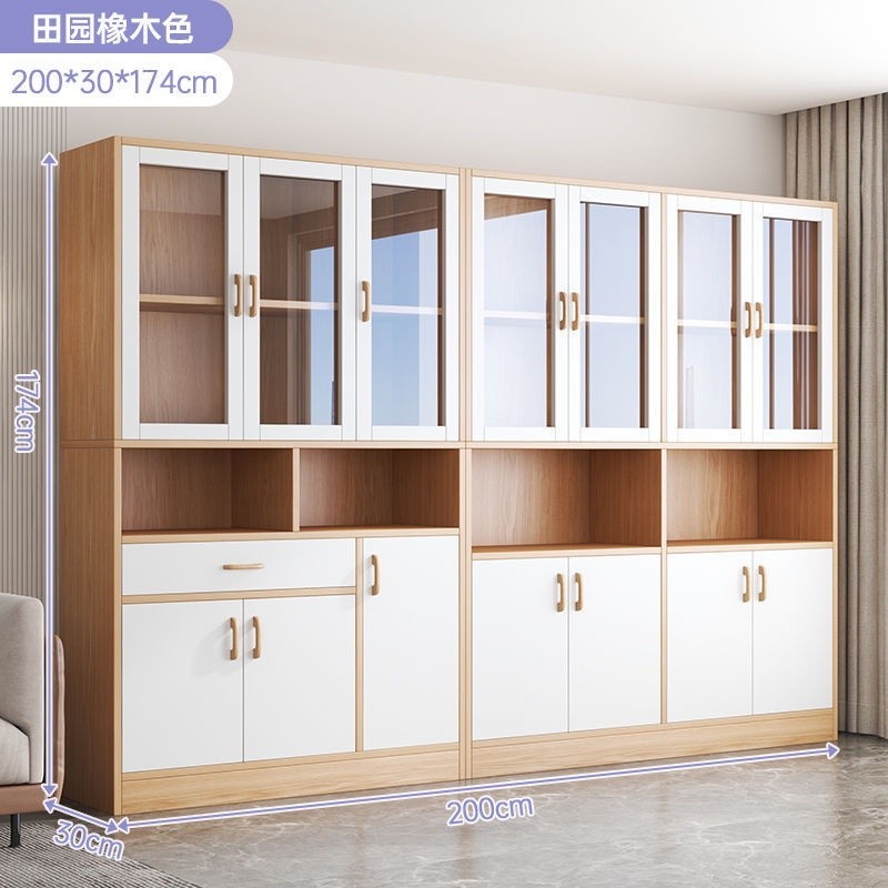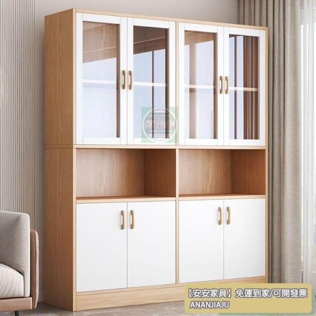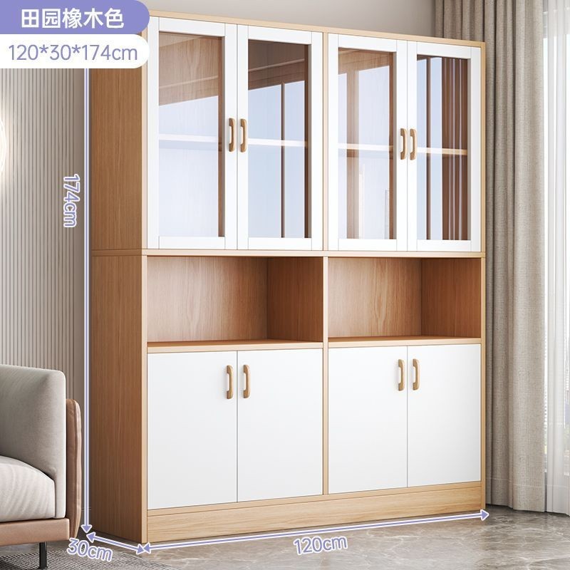 安安家具實木色防塵書櫃 現代簡約客廳展示櫃 傢用帶門木櫃 辦公室落地文件櫃 餐邊櫃 玻璃展示櫃 收納櫃