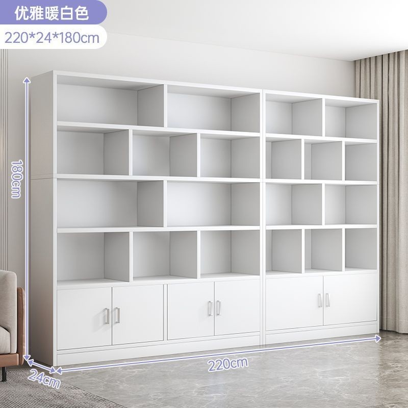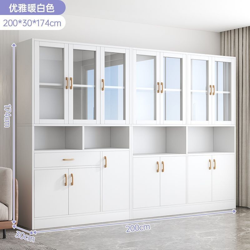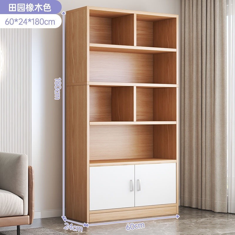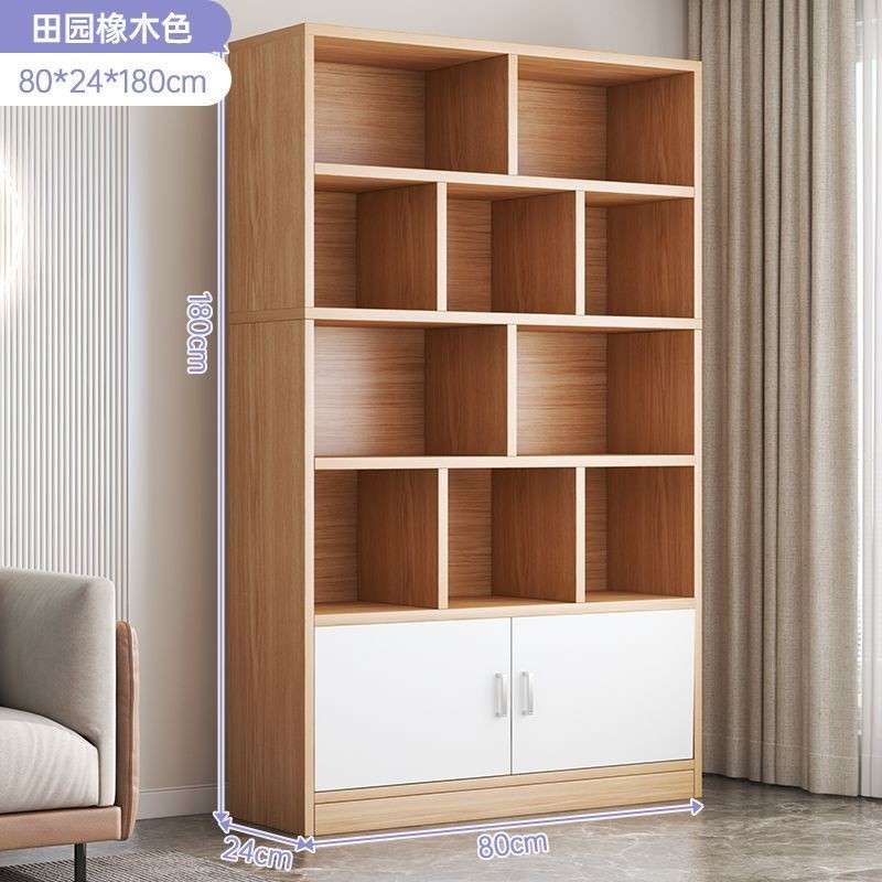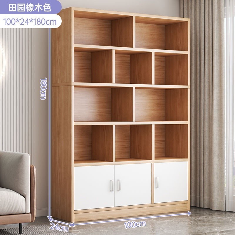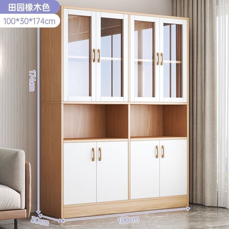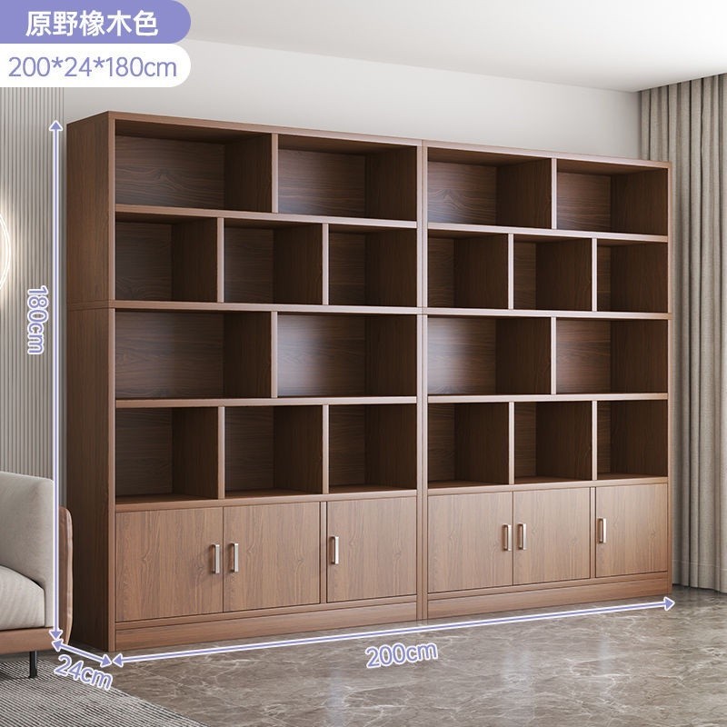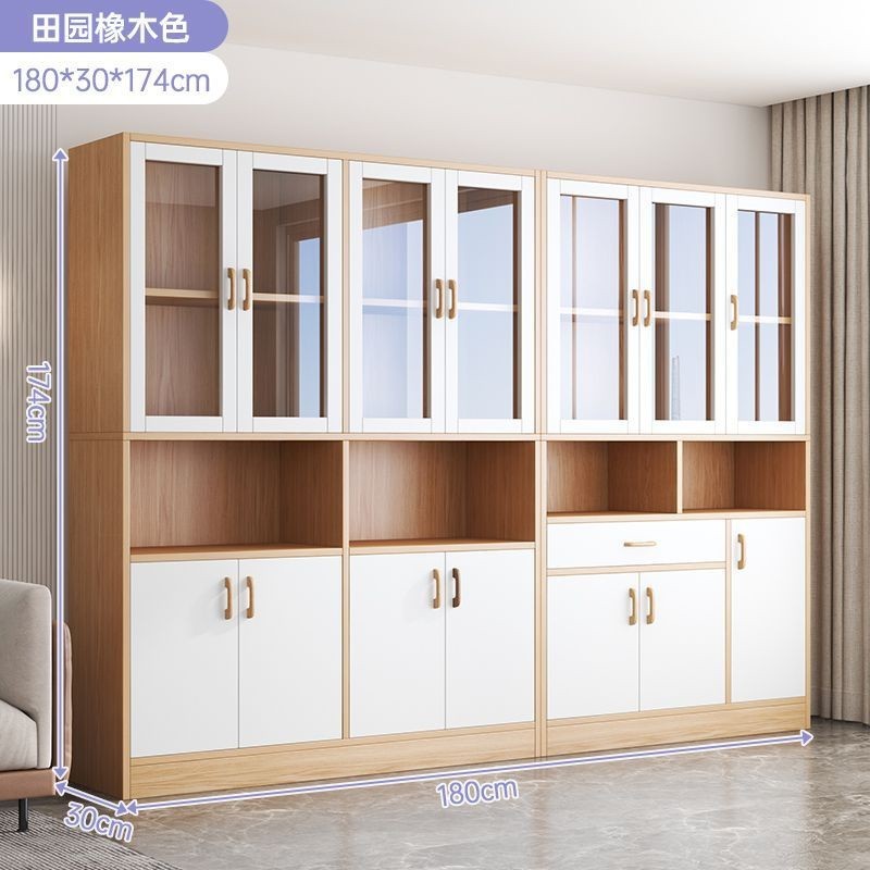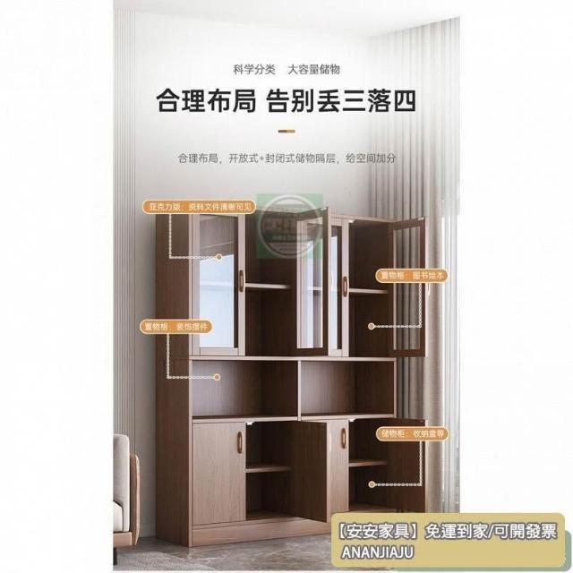 安安家具實木色防塵書櫃 現代簡約客廳展示櫃 傢用帶門木櫃 辦公室落地文件櫃 餐邊櫃 玻璃展示櫃 收納櫃