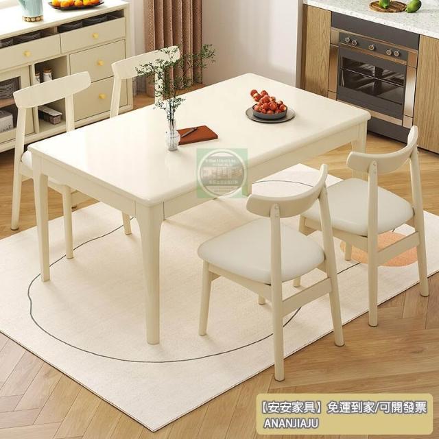 安安家具餐桌 餐桌椅 喫飯桌 法式奶油風餐桌 傢用長方形方桌飯桌 小戶型北歐全實木餐桌椅組閤 長條桌 洽談桌 飯桌