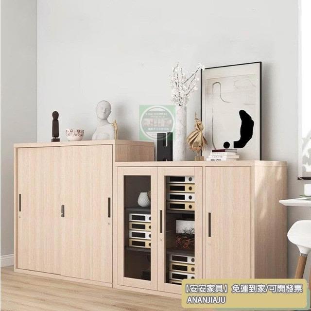 安安家具辦公室文件櫃 木紋鋼製鐵皮櫃 資料櫃 檔案櫃 書櫃 帶鎖玻璃展示櫃 矮櫃 儲物櫃子 落地置物櫃 儲物櫃 玄關