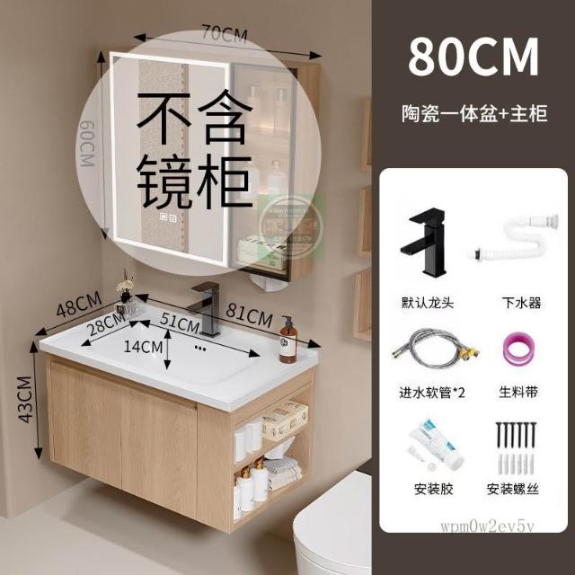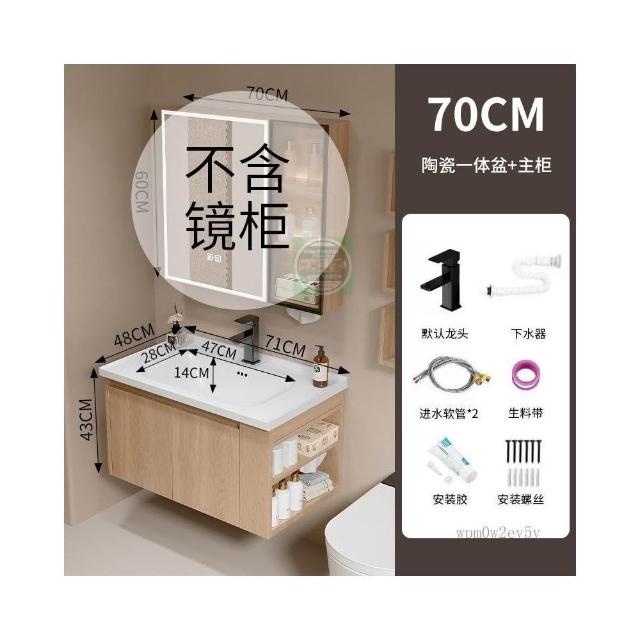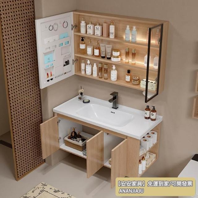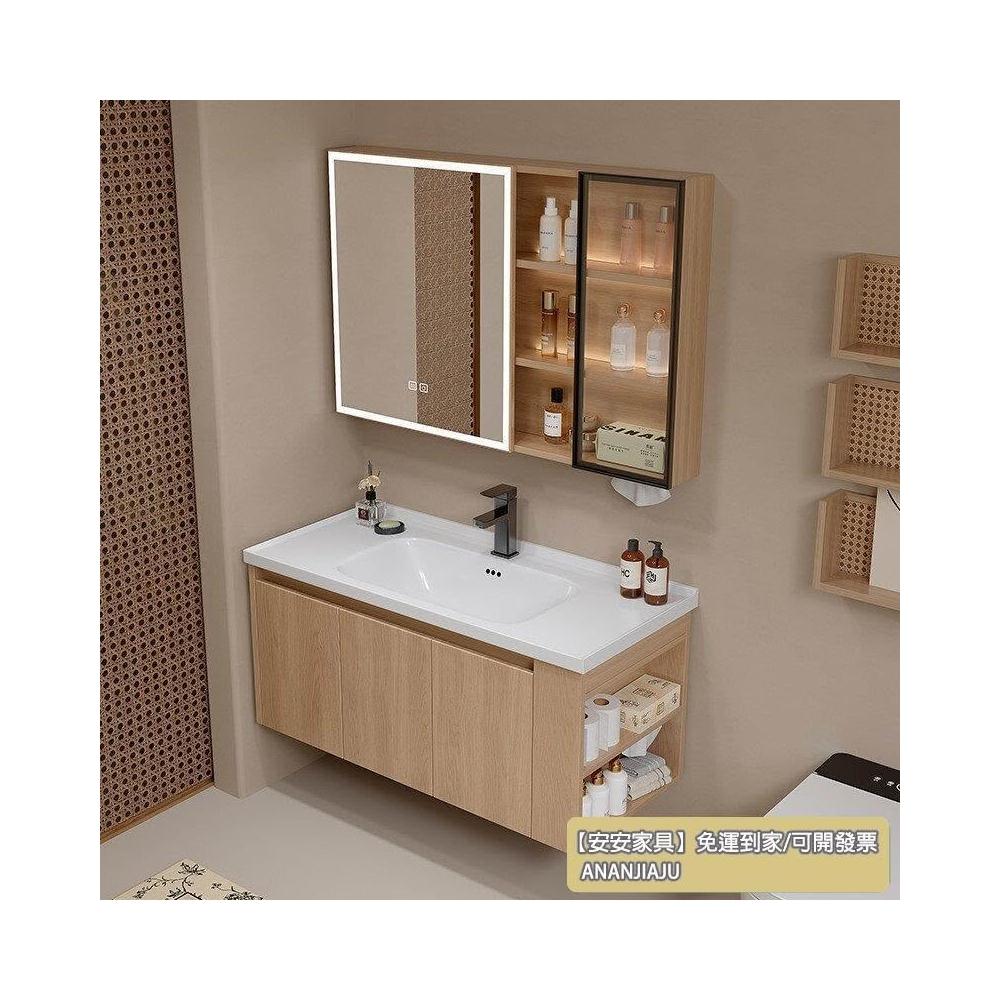 安安家具【破損包賠】原木色浴室櫃防水 帶側邊收納架浴櫃 陶瓷一體盆洗手臉池 90/100cm洗手臺 鏡櫃浴櫃 洗漱臺