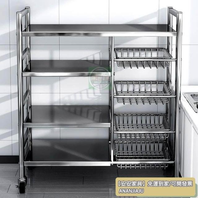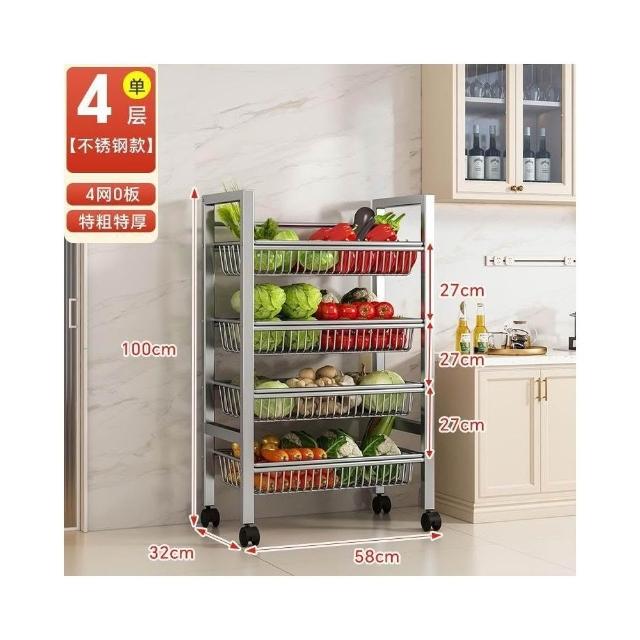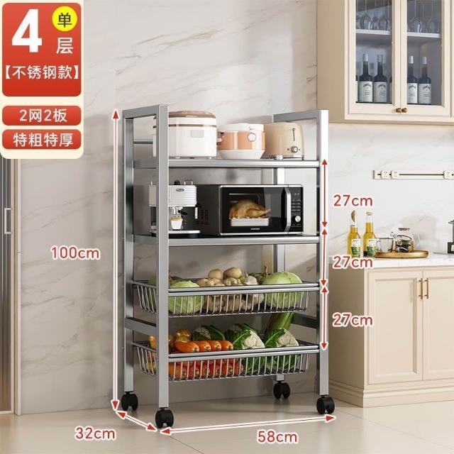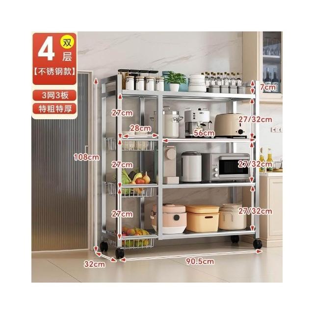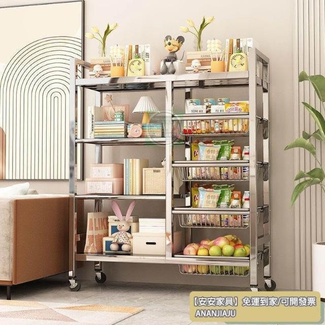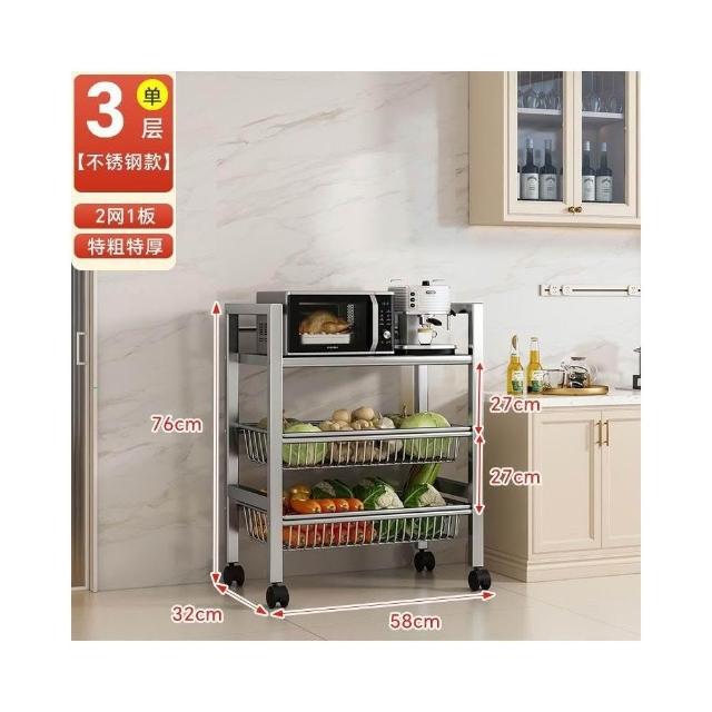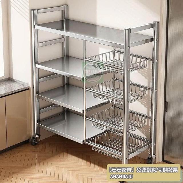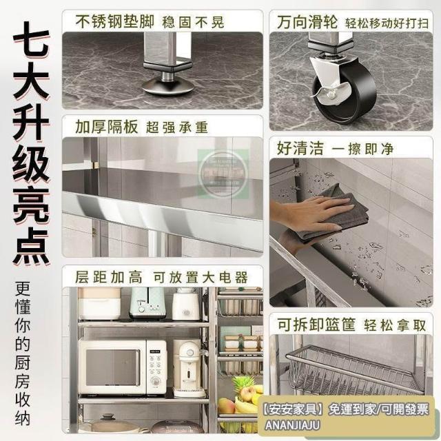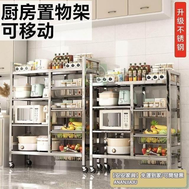 安安家具🔥不銹鋼收納架 移動微波爐收納架 家用落地置物架 廚房置物架 多功能多層網籃 菜籃子 鍋具架 菜籃子收納架