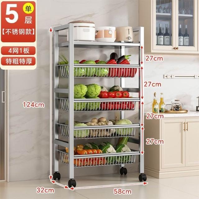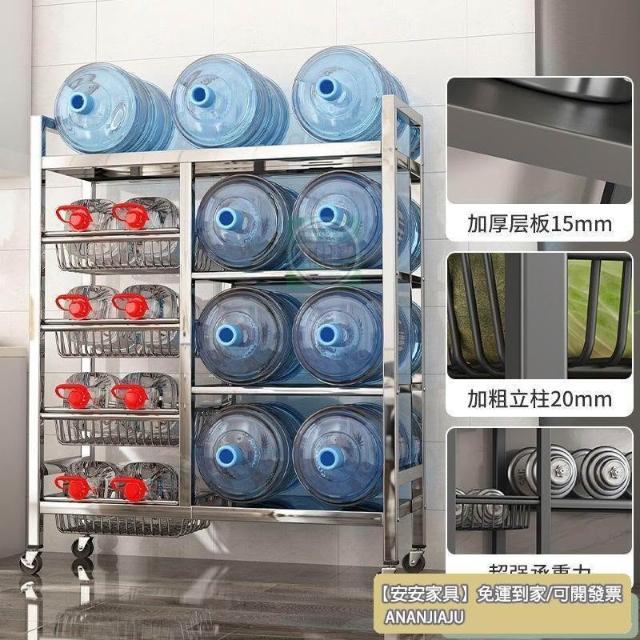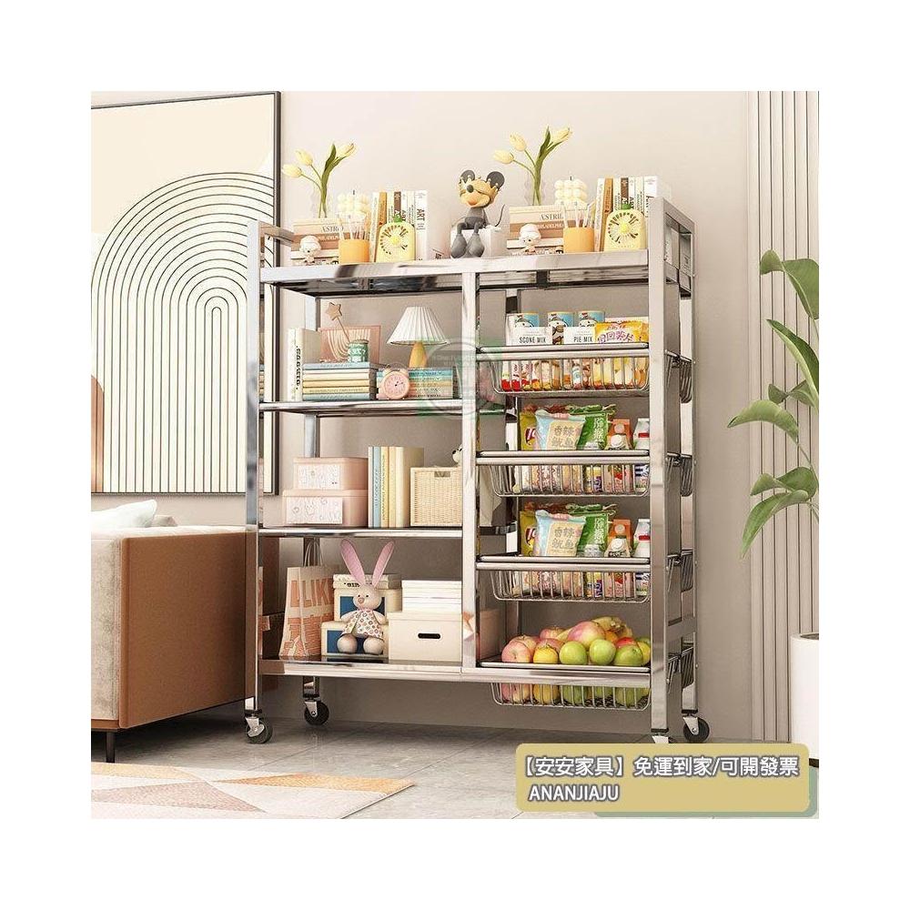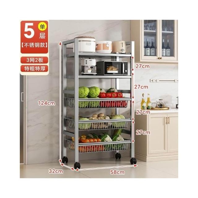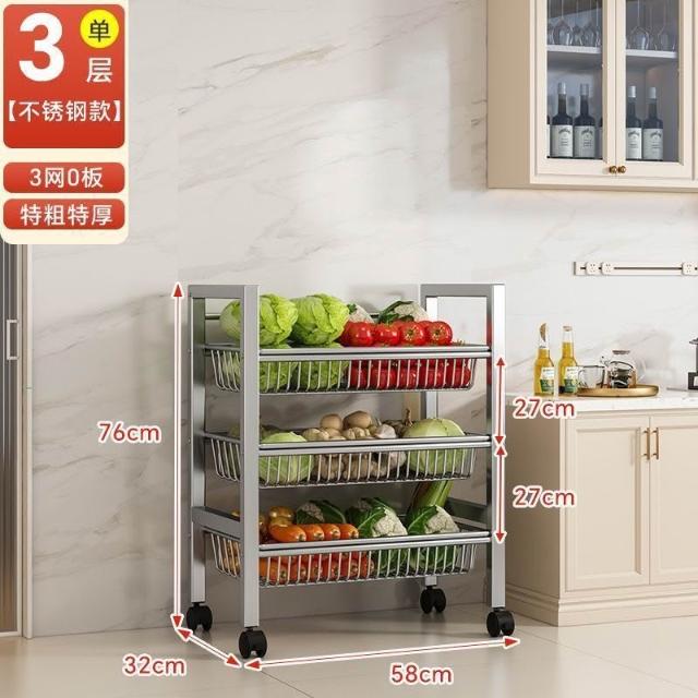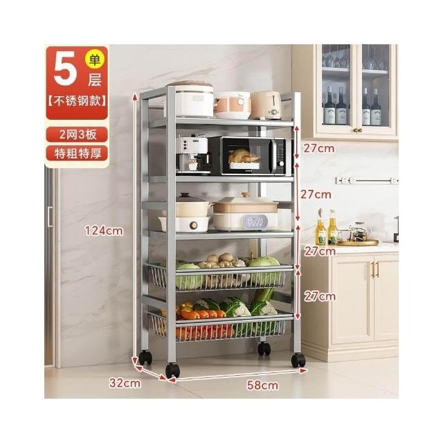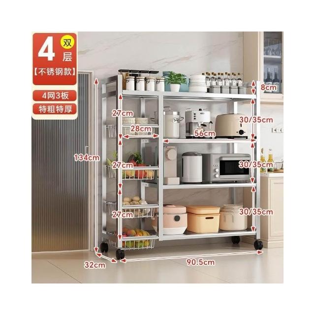 安安家具🔥不銹鋼收納架 移動微波爐收納架 家用落地置物架 廚房置物架 多功能多層網籃 菜籃子 鍋具架 菜籃子收納架