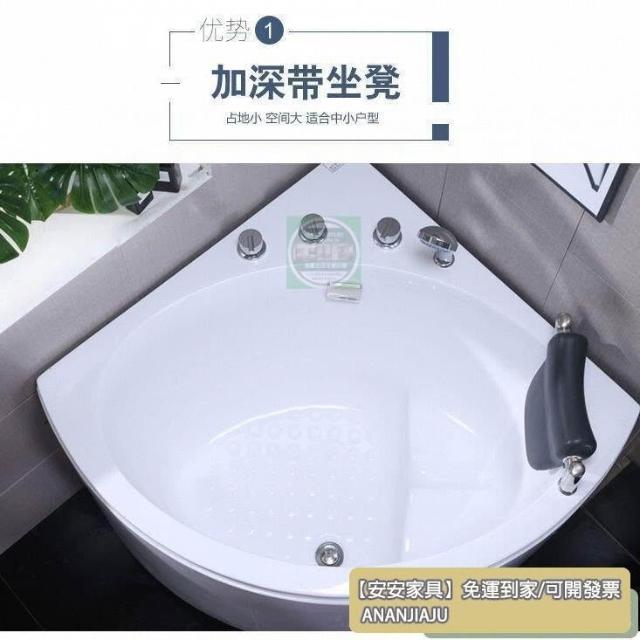 安安家具超深款亞剋力浴缸三角形扇形浴缸獨立式普通小戶型成人泡澡浴盆 浴室浴缸