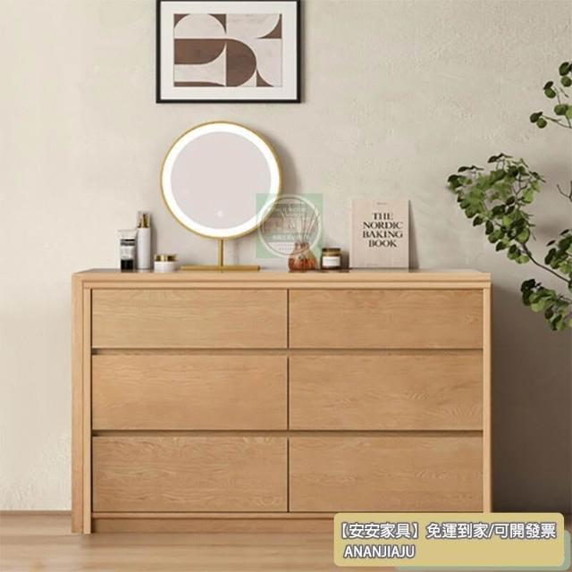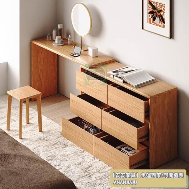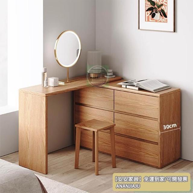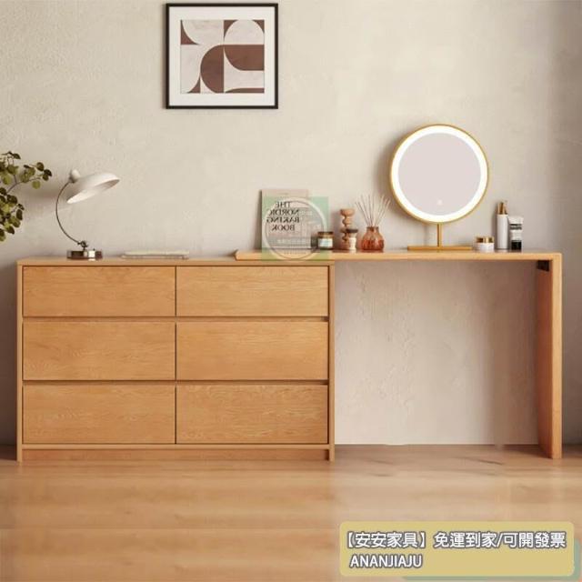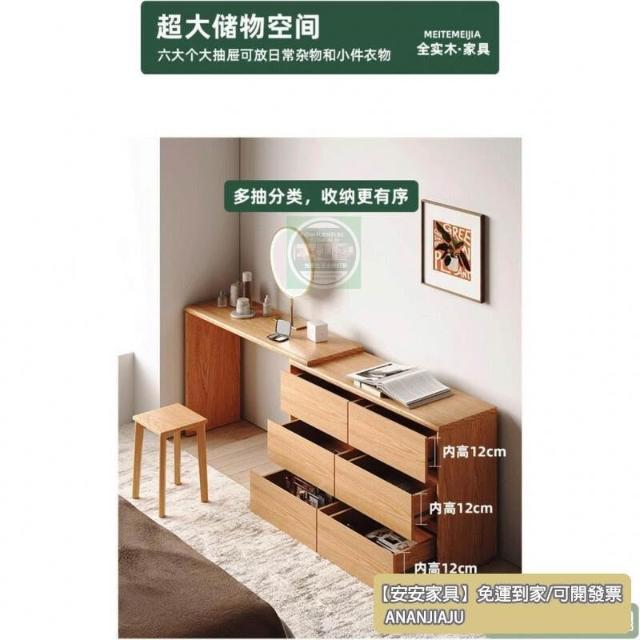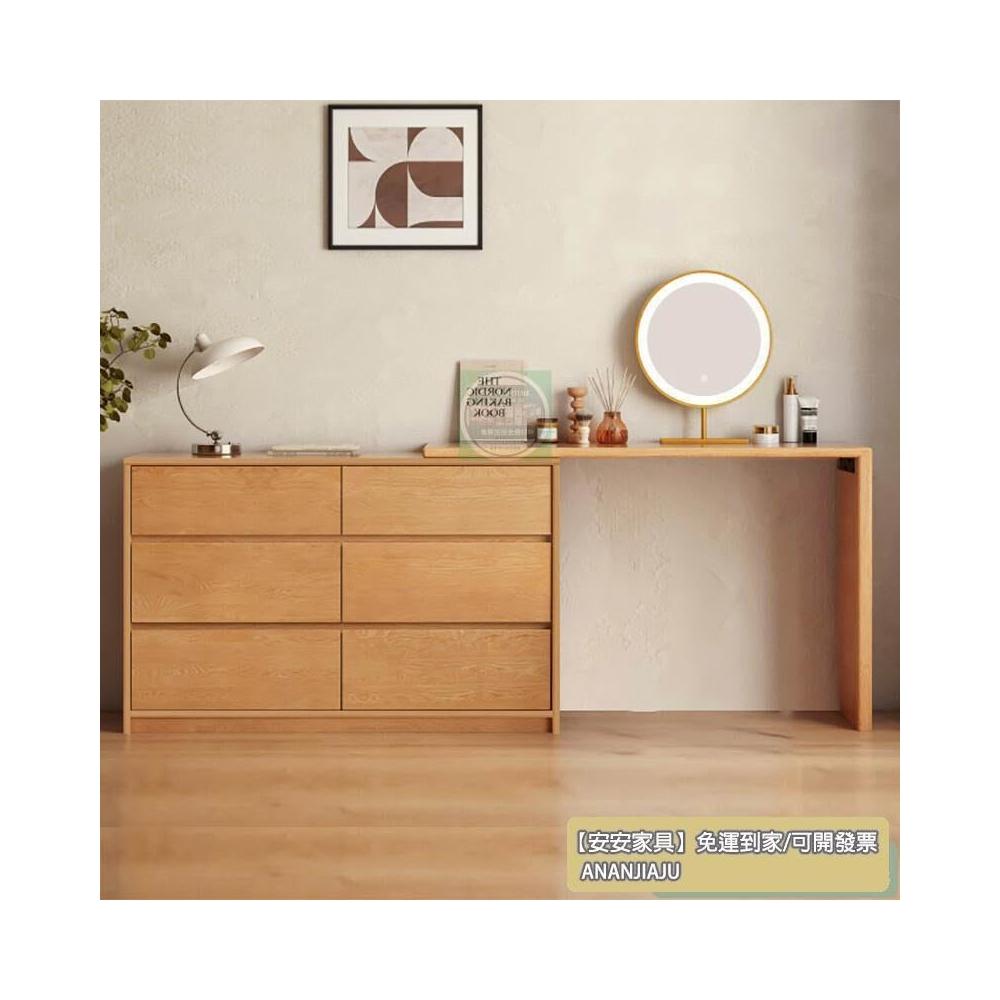 安安家具復古收納櫃 抽屜式收納櫃 實木極窄斗柜30cm橡木臥室床尾超薄六斗柜梳妝臺一體L轉角化妝臺