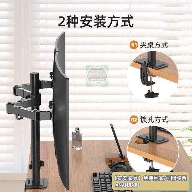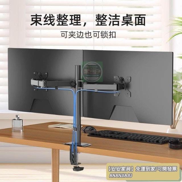 安安家具支爾成雙屏顯示器支架一拖二臺式電腦旋轉陞降機械臂底座二閤一