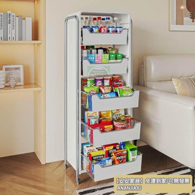 安安家具零食架子 置物架 客廳高顔值落地多層儲物櫃 抽屜式放水果 層架 縫隙收納車 手推車 玩具收納櫃 置物櫃 收納