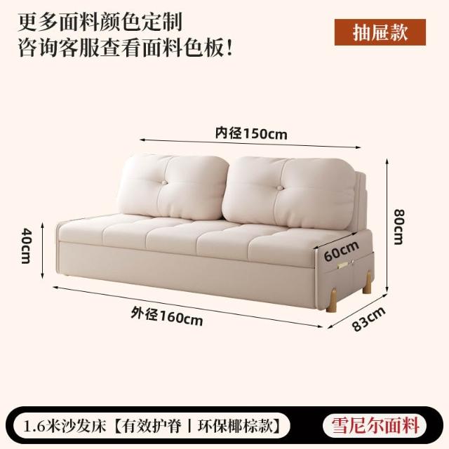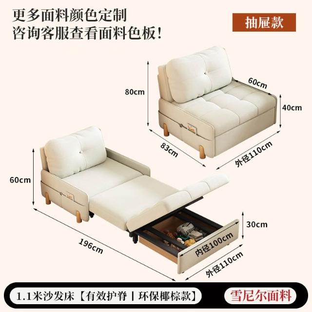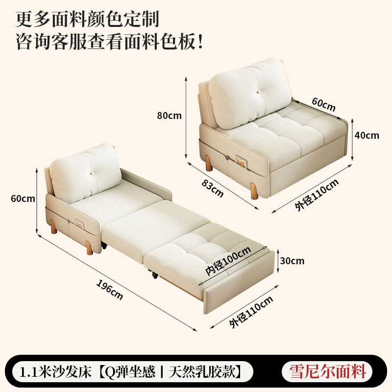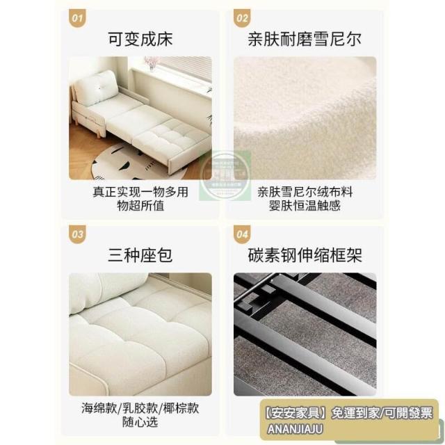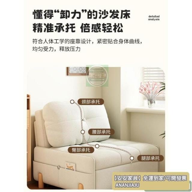 安安家具沙發床 伸縮沙發床 多功能沙發床 奶油風無扶手沙發床 可折疊客廳網紅新款小戶型兩用單雙人陽臺書房床