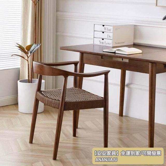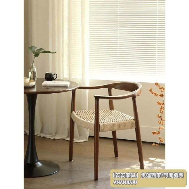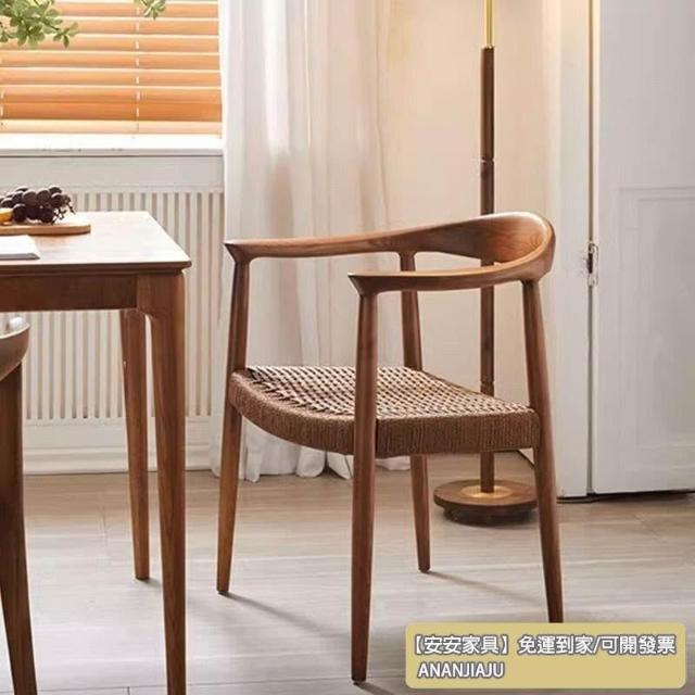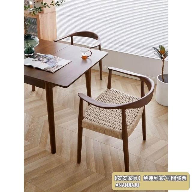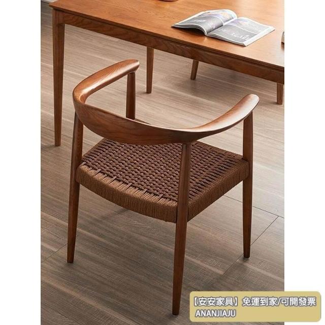 安安家具餐椅 休閒椅 椅子 複古侘寂風全實木餐椅 傢用辦公繩編肯尼迪總統椅 廣島茶桌 主人椅子 喫飯桌子 飯桌 實木