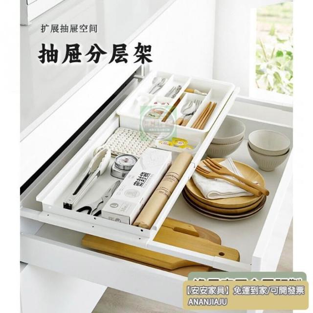 安安家具抽屜分層架 上下分層櫥櫃內隔板 改造可伸縮抽拉籃廚房工具收納盒薄