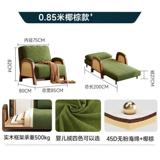 安安家具爆款 沙發床 折疊沙發 實木沙發 藤編沙發床 懶人小戶型沙發 可折疊兩用多功能陽臺2025新款