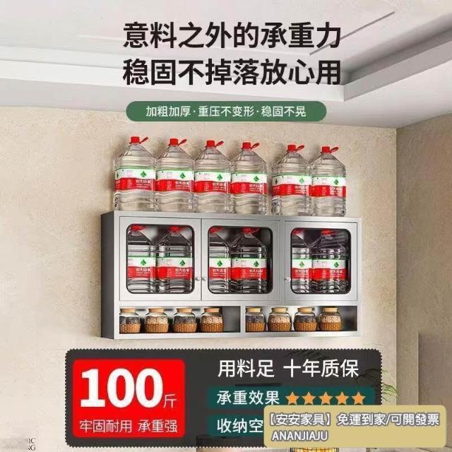 安安家具【訂製】廚房儲物櫃 輕奢櫃子 不鏽鋼弔櫃 壁掛櫃 廚房置物櫃 多層儲物櫃 壁櫃 防銹防潮碗櫃