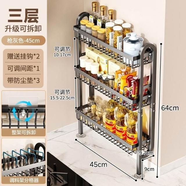 安安家具爆款 廚房調料置物架可調節壁掛極窄靠墻多層家用窄邊調味料品罐收納盒 收納神奇 收納架 廚房置物架 零食收納