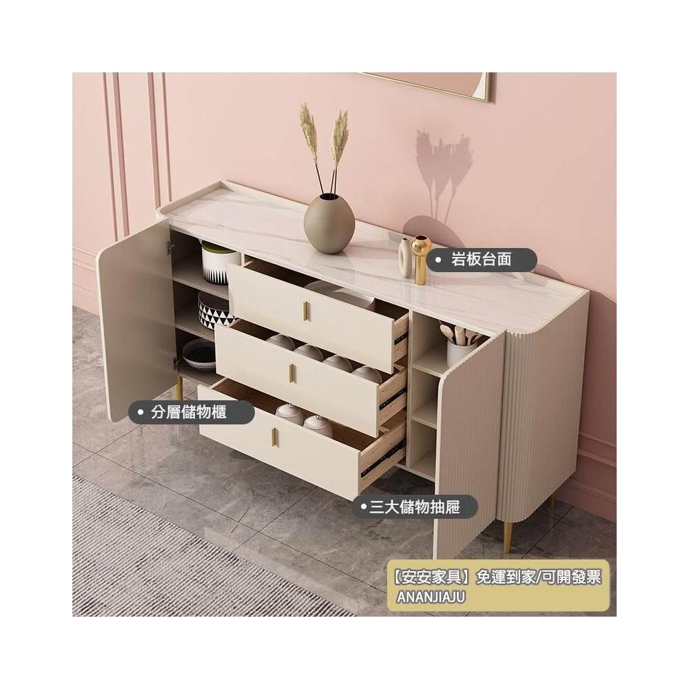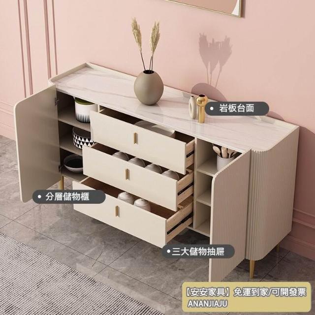 安安家具【整裝發貨】亮光巖闆餐邊櫃 高櫃 一體靠牆現代簡約傢用輕奢客廳茶水儲物置物櫃 斗櫃 收納櫃 餐邊櫃 玄關櫃