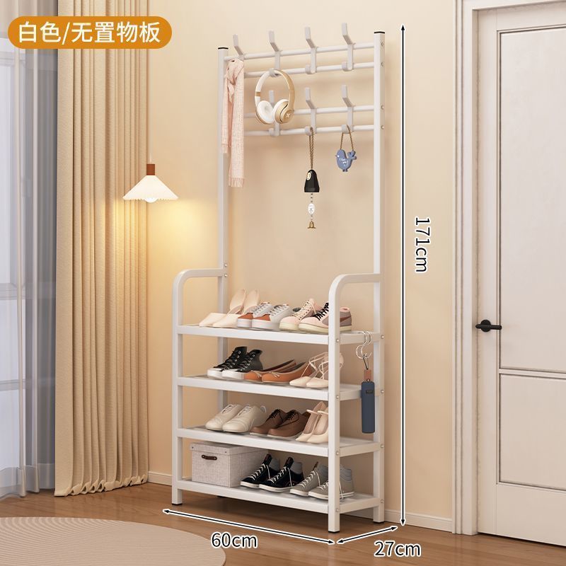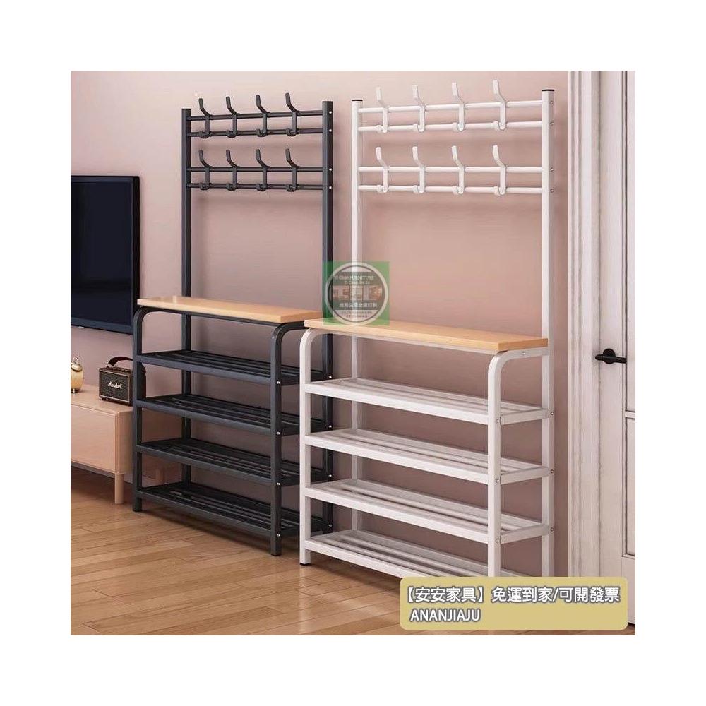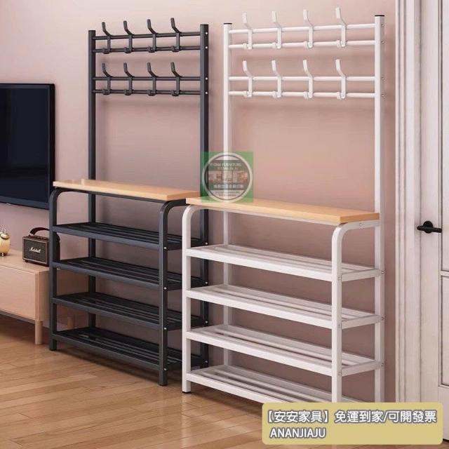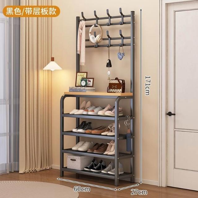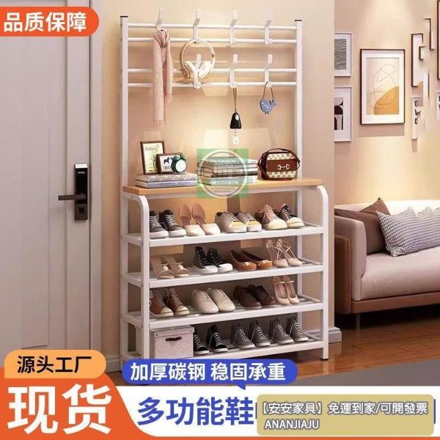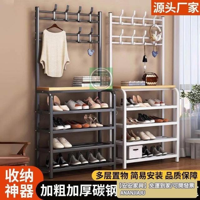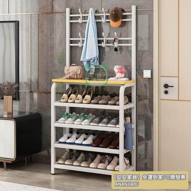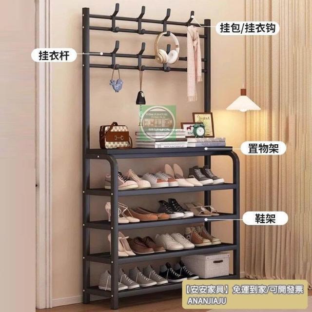 安安家具一體式衣帽架 傢用客廳落地多層鞋架 收納置物架 簡易齣租房掛衣架子 立式衣架 落地衣架 可移動衣架 晾衣架