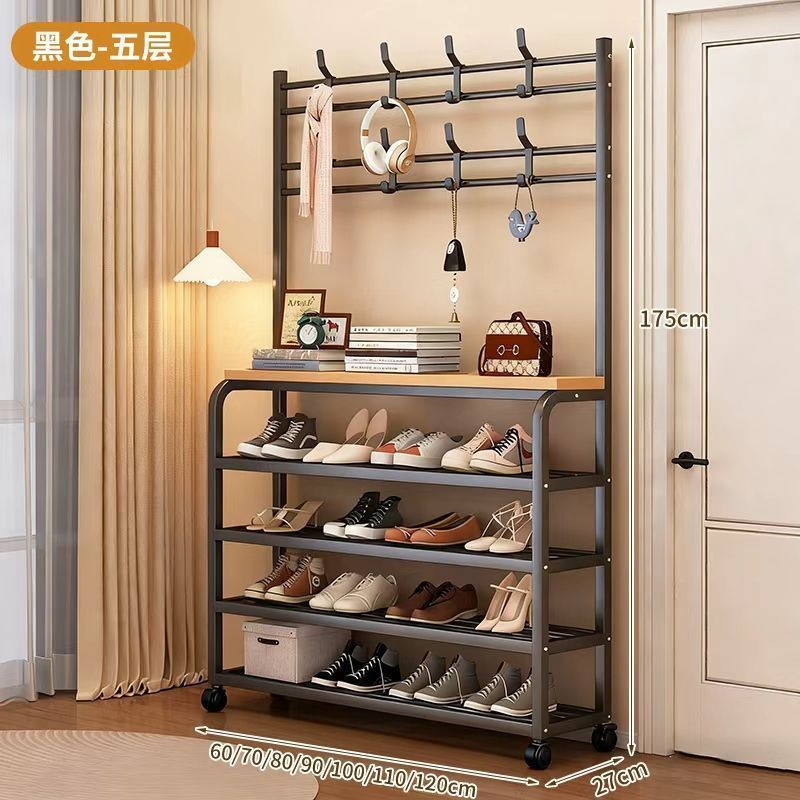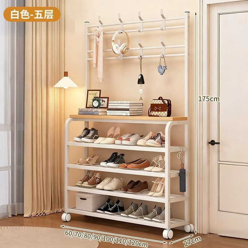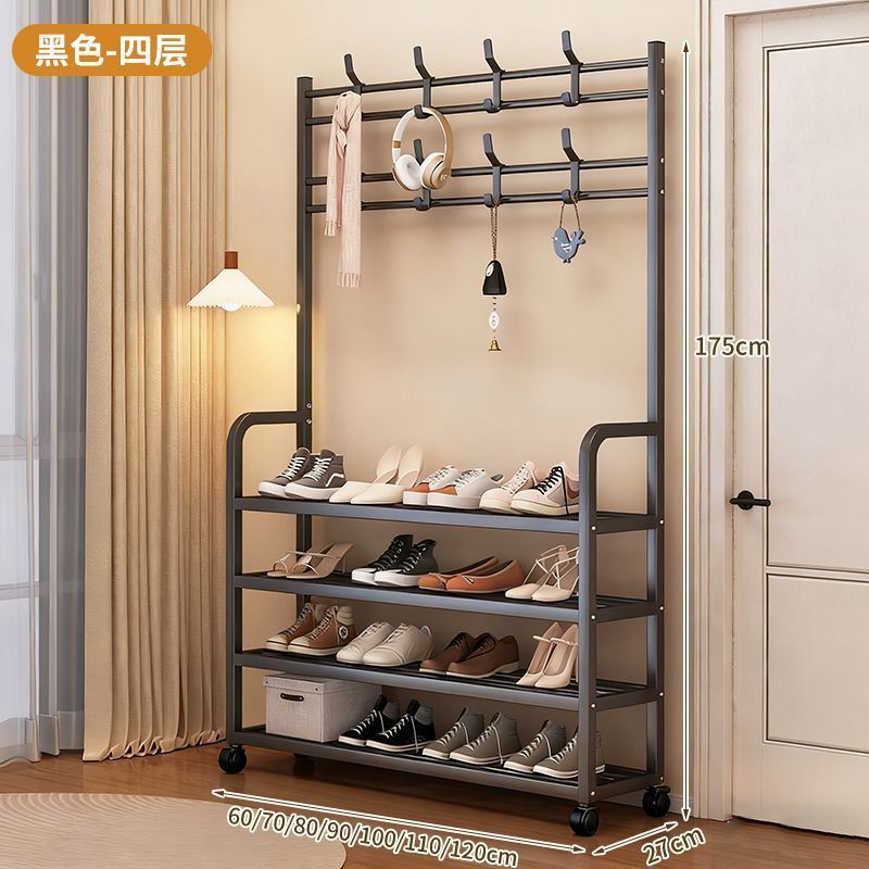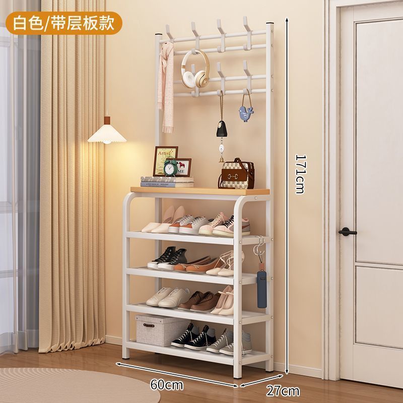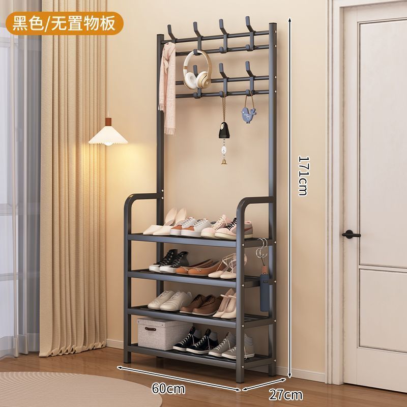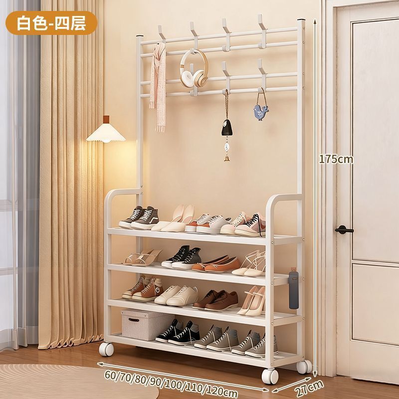 安安家具一體式衣帽架 傢用客廳落地多層鞋架 收納置物架 簡易齣租房掛衣架子 立式衣架 落地衣架 可移動衣架 晾衣架