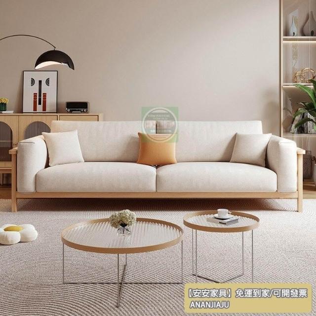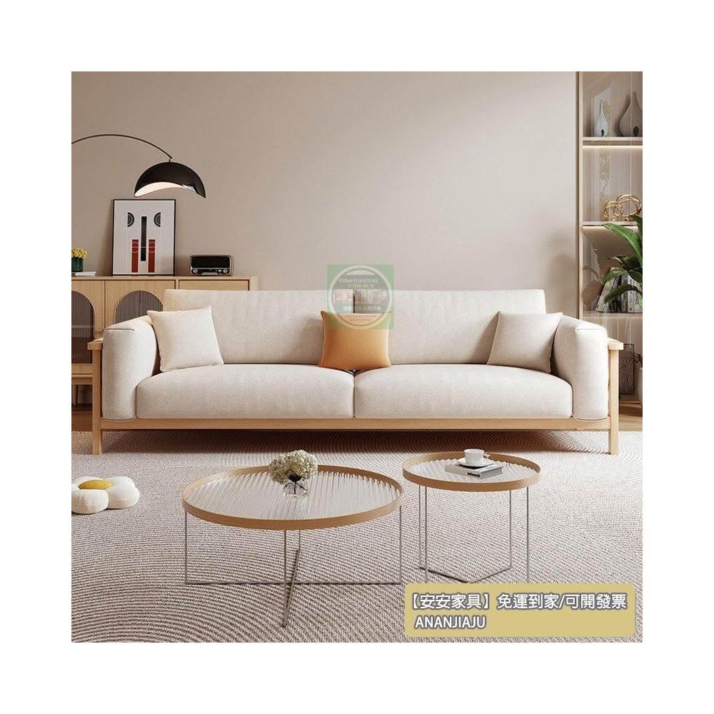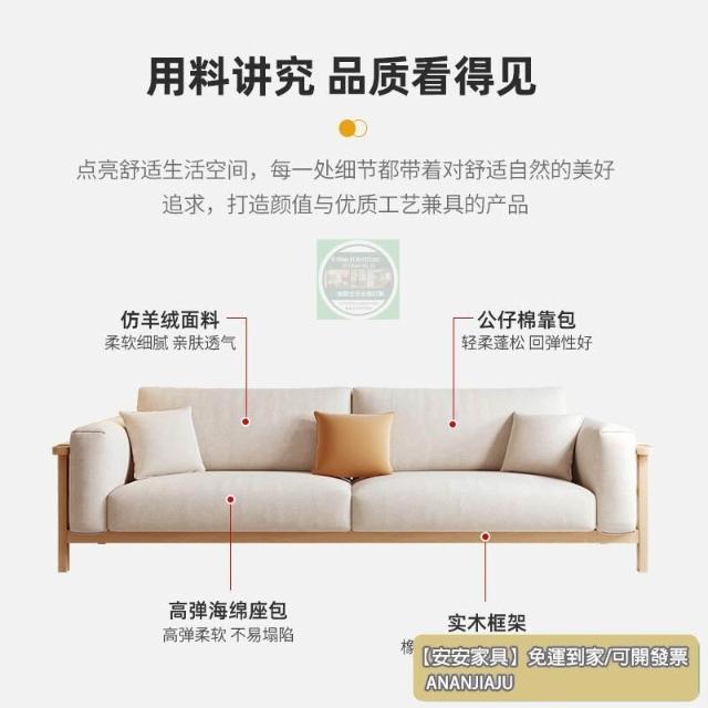 安安家具客廳沙發 簡約風沙發 日式佈藝沙發小戶型原木風客廳齣租房用北歐公寓三人位傢用小沙發