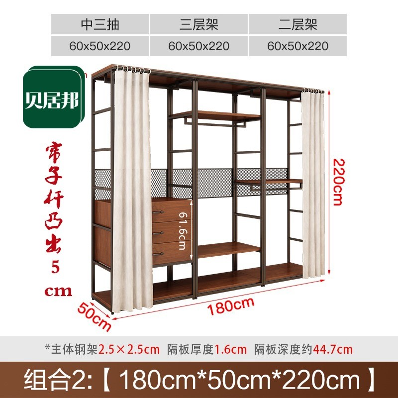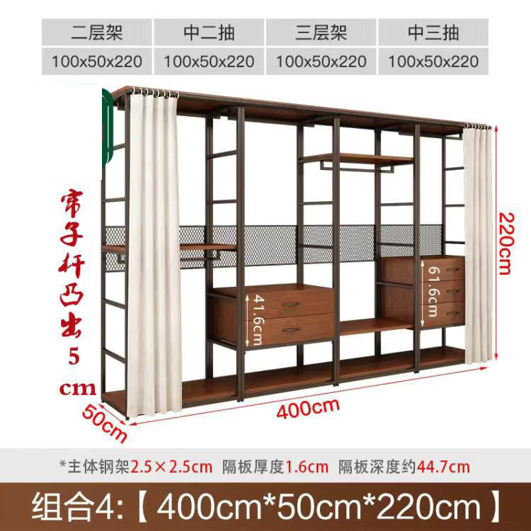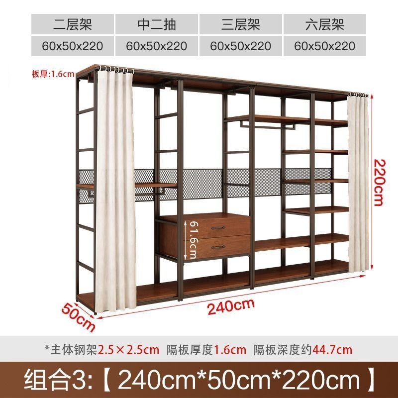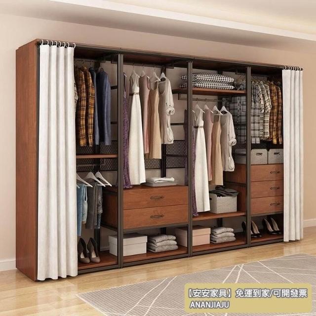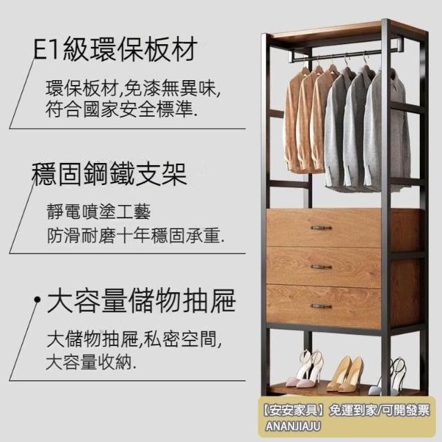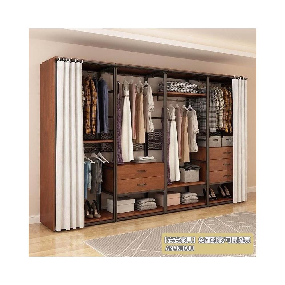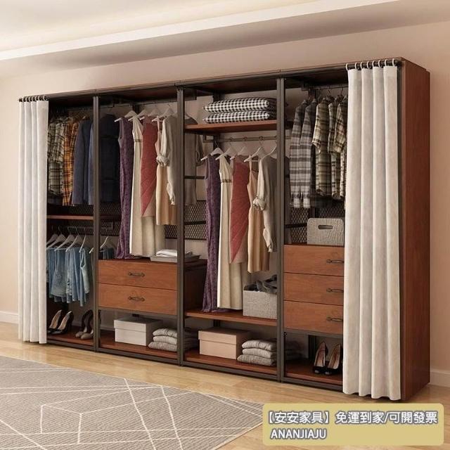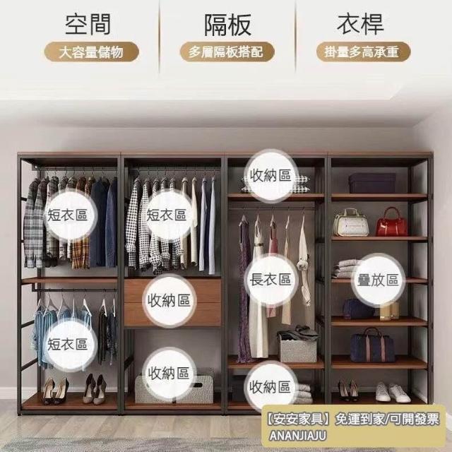 安安家具可付費安裝💯可客製 簡約步入式衣帽間 架子臥室鐵藝衣櫃 落地組閤掛衣架 臥室鋼木衣櫃架 開放式組閤衣帽間
