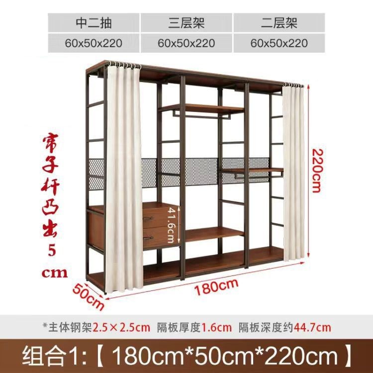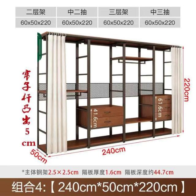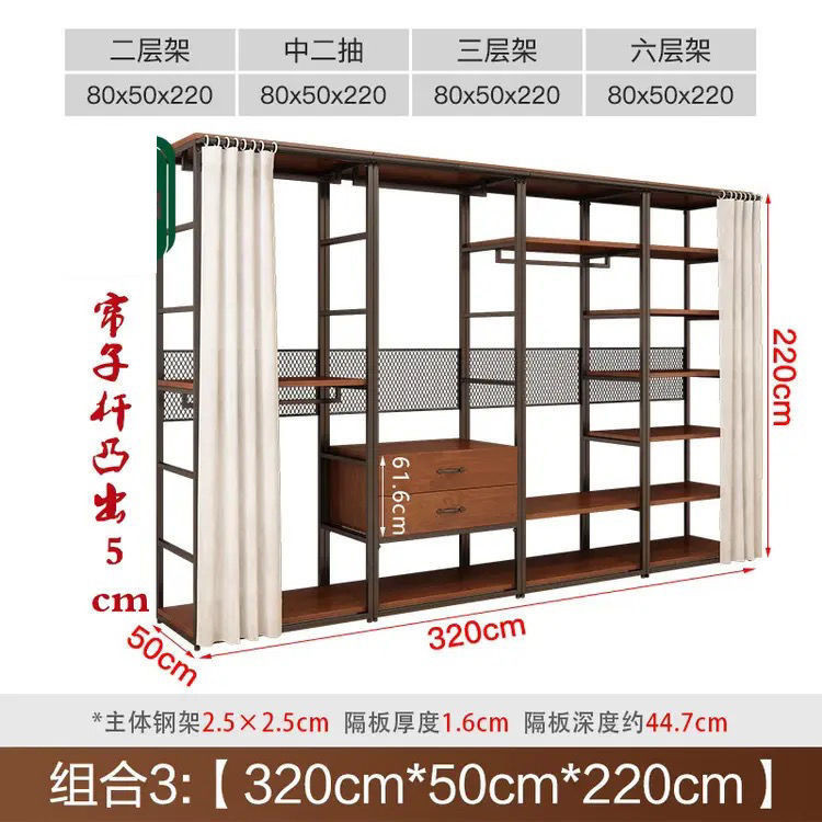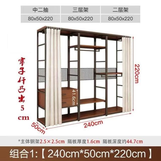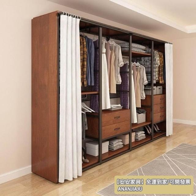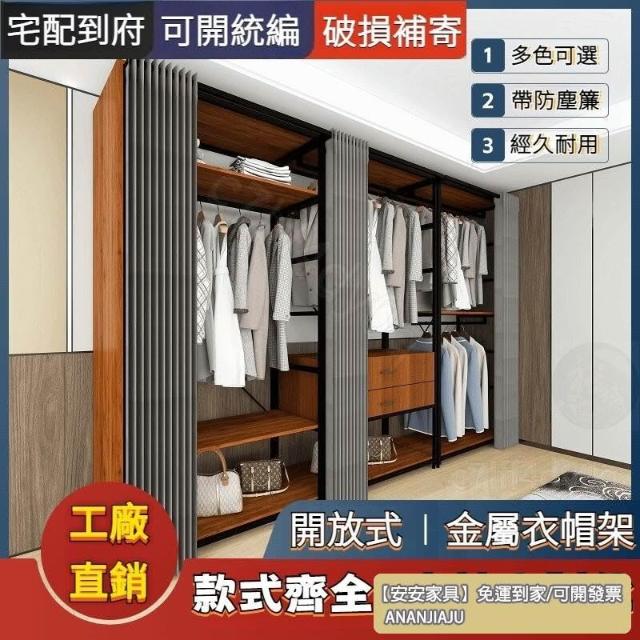 安安家具可付費安裝💯可客製 簡約步入式衣帽間 架子臥室鐵藝衣櫃 落地組閤掛衣架 臥室鋼木衣櫃架 開放式組閤衣帽間