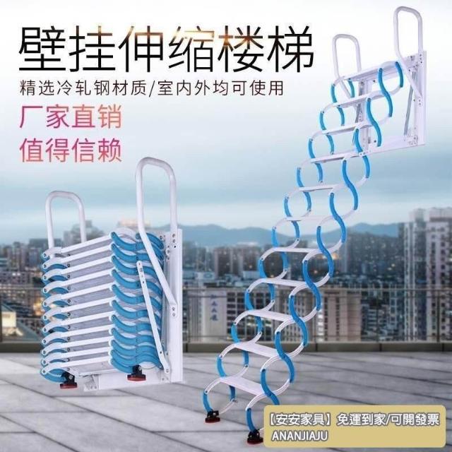 安安家具室外伸縮樓梯 閣樓家用折疊陞降伸拉室內隱形複式戶外陞縮掛墻梯子