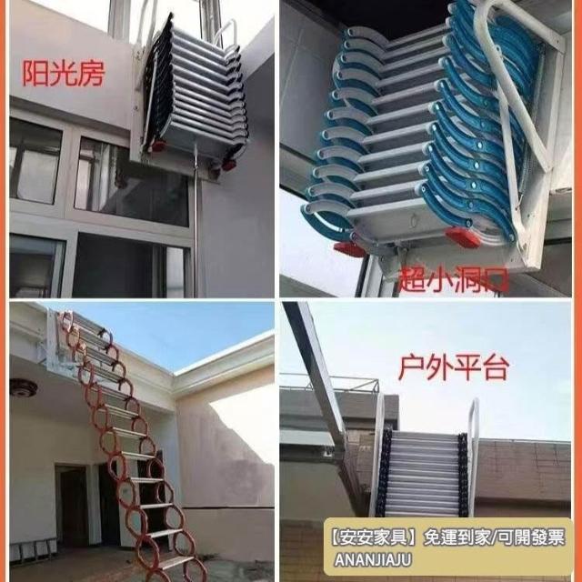 安安家具可折疊拉伸折疊梯 伸縮樓梯 閣樓壁掛款簡易樓梯 加高戶外爬墻陞降梯
