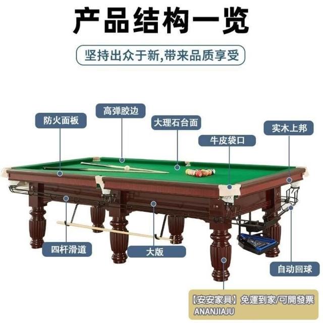 安安家具大理石鋼庫臺球桌 自動迴球標準型中式黑八商用桌球臺3.2m小斯洛剋