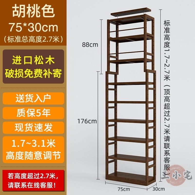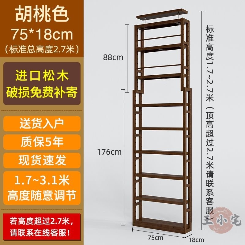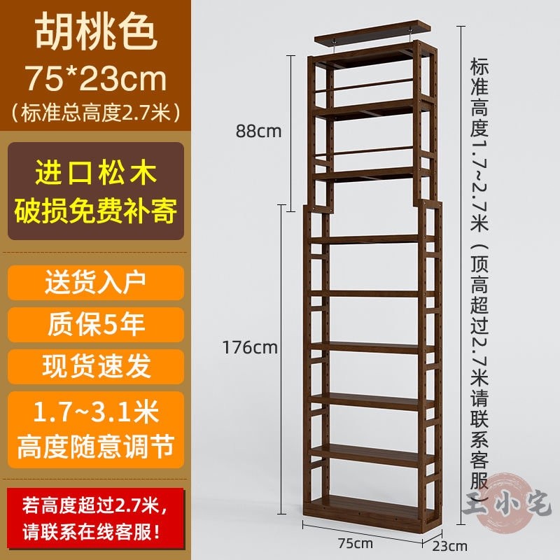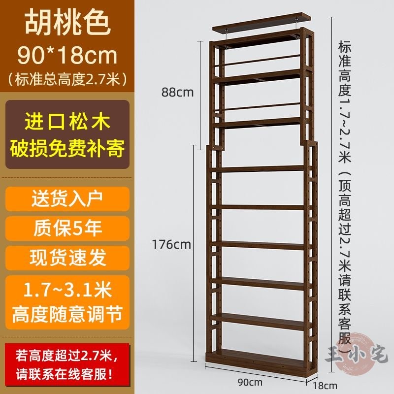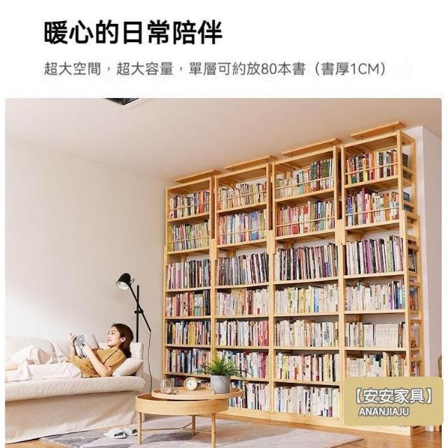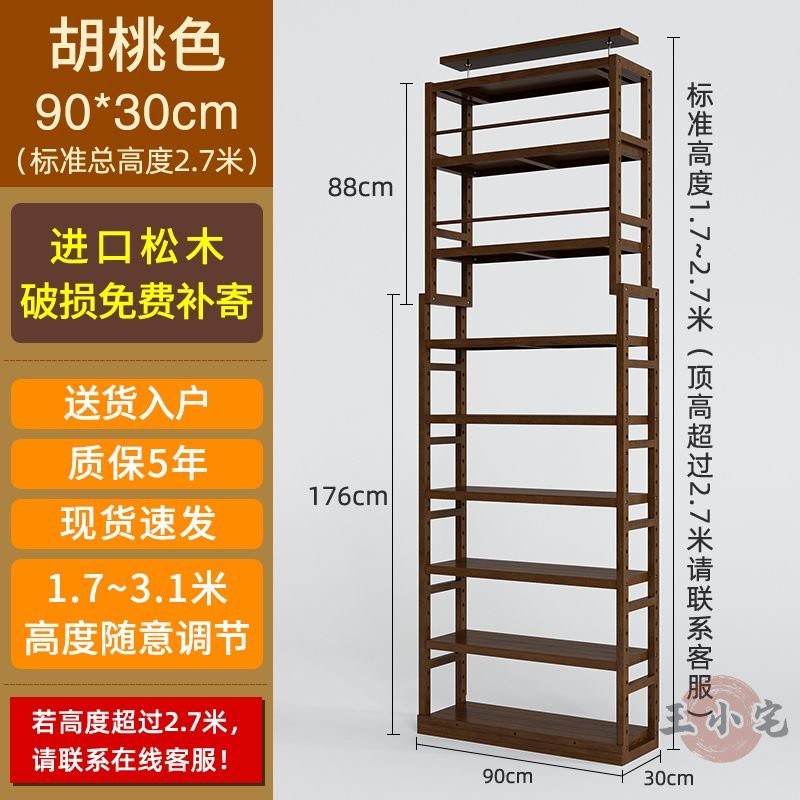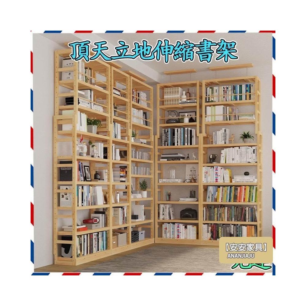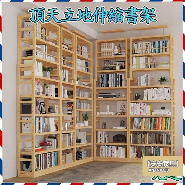 安安家具頂天立地置物架 實木書架 客廳展示架 多層收納架 伸縮置物書架 實木整墻書柜 落地置物櫃8ZH80