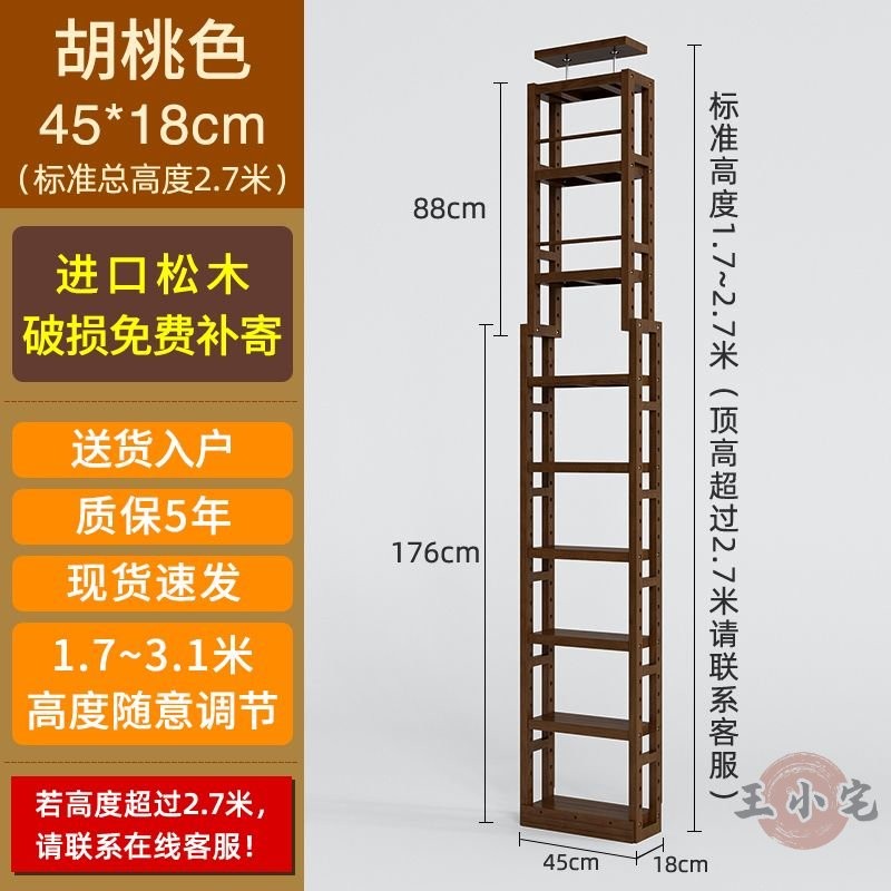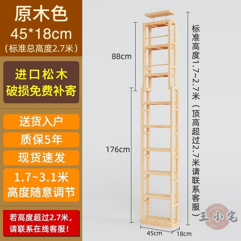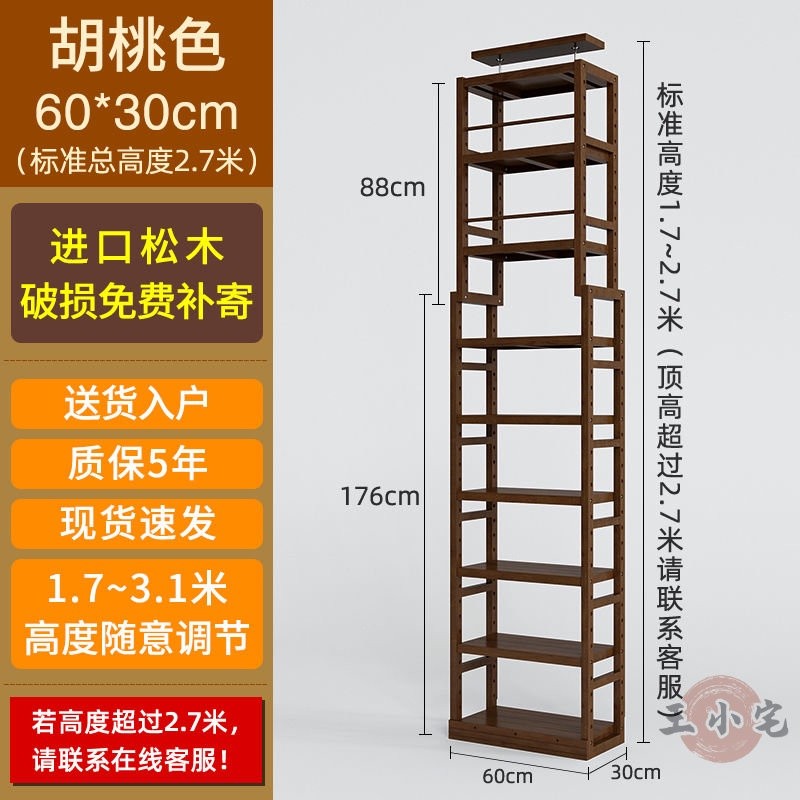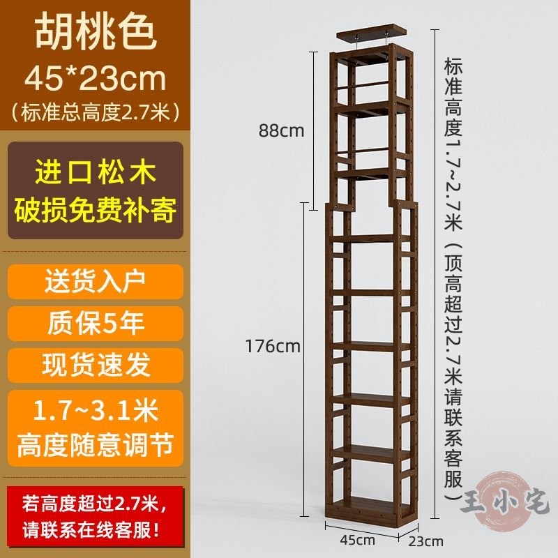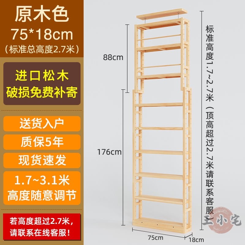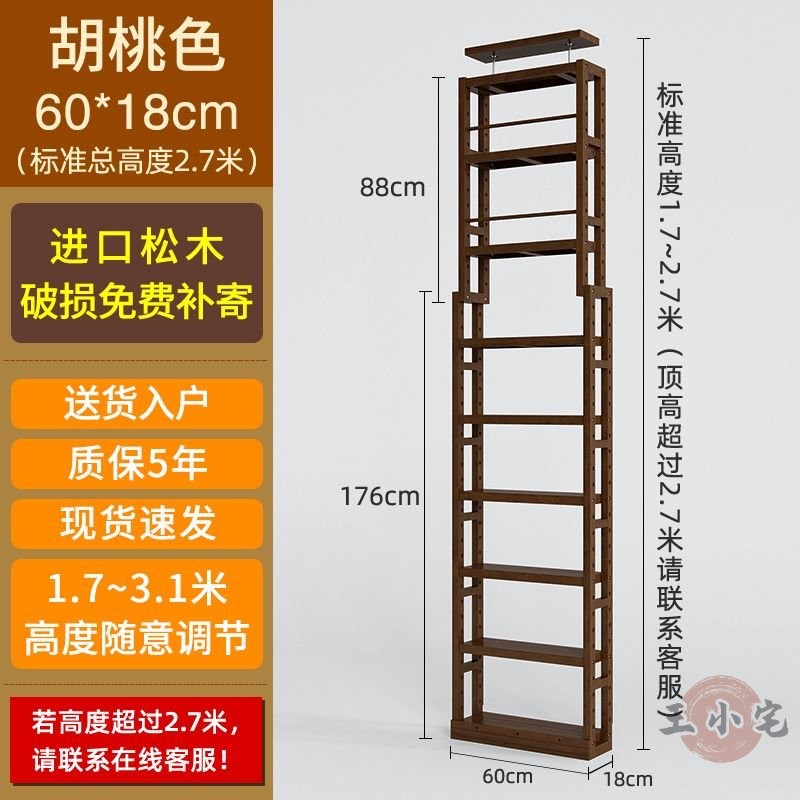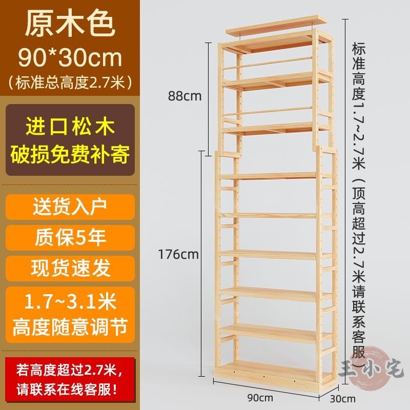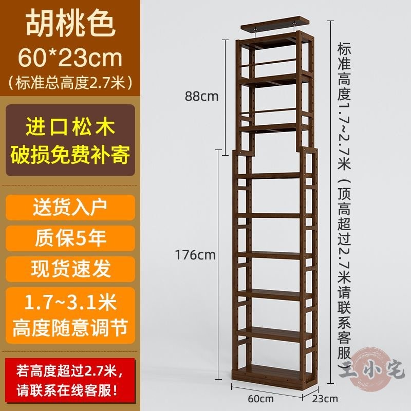 安安家具頂天立地置物架 實木書架 客廳展示架 多層收納架 伸縮置物書架 實木整墻書柜 落地置物櫃8ZH80
