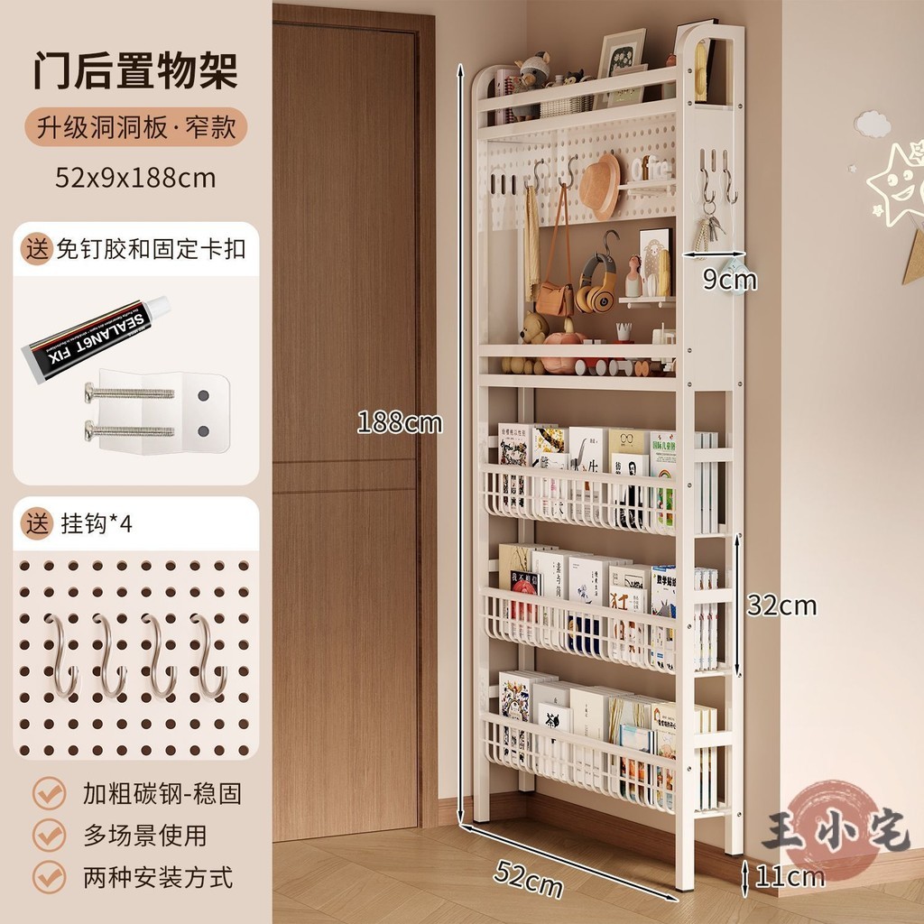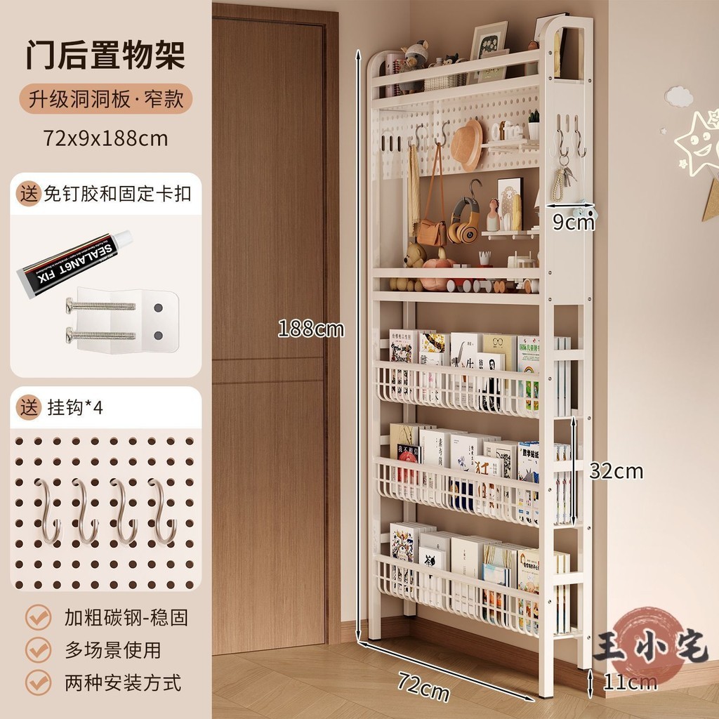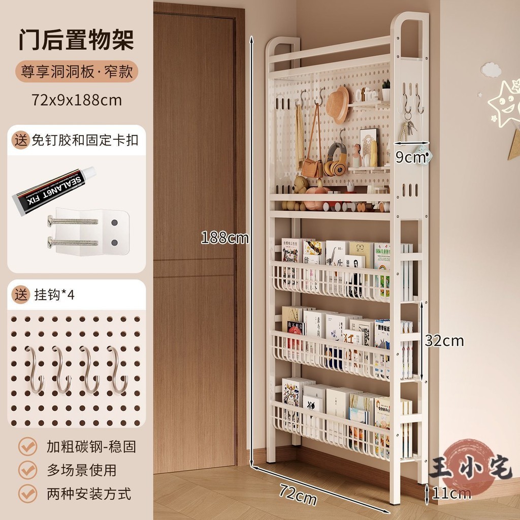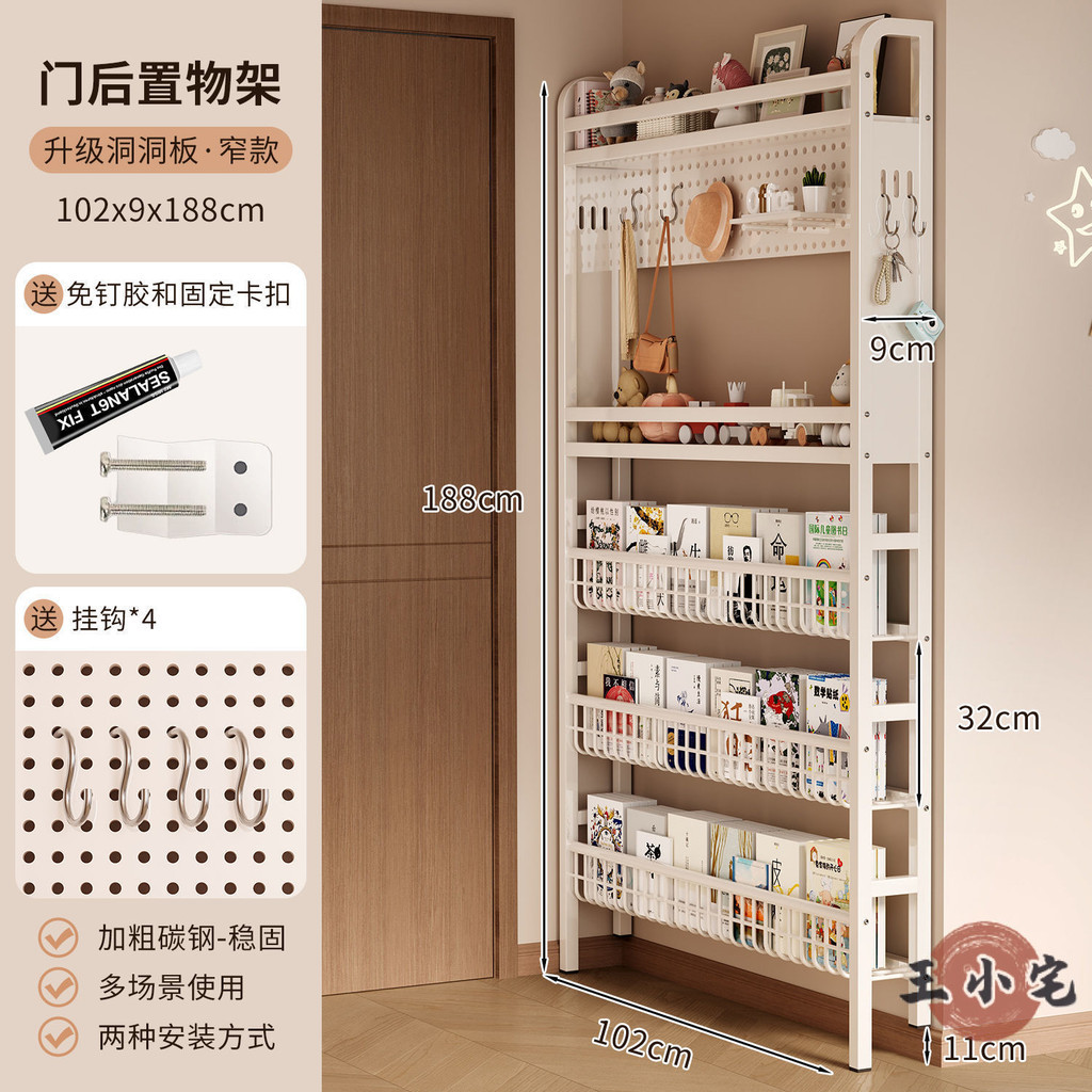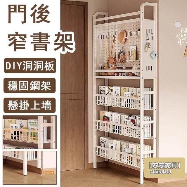 安安家具超薄書架 門後書架 鐵藝書架 洞洞板書架 靠墻書架 落地書架 玄關置物架 繪本架 窄書架 書報架OH1959