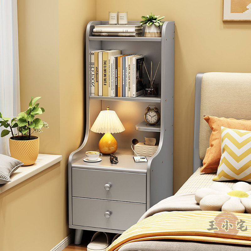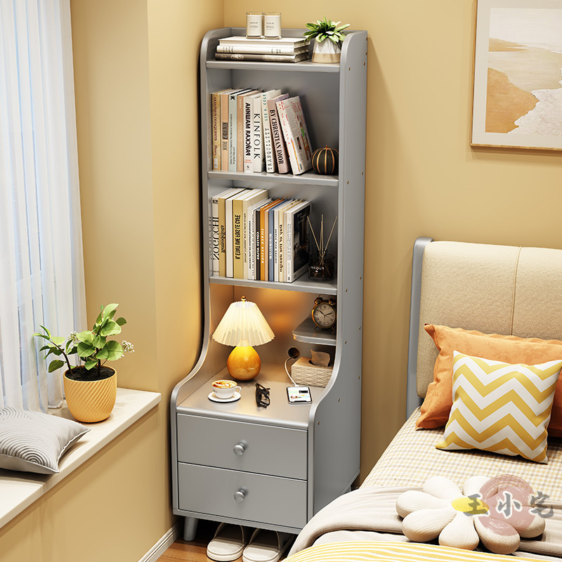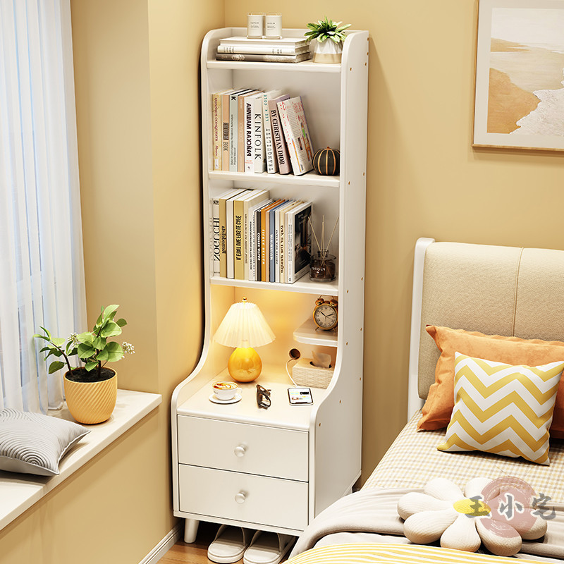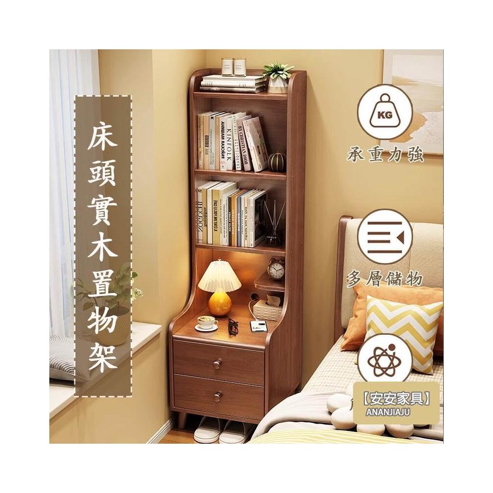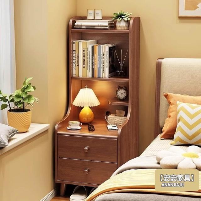 安安家具床頭櫃 抽屜櫃 床頭置物架 床邊儲物櫃 帶書架 加高收納架 層架 臥室收納架 床頭書架 床頭置物桌OH852