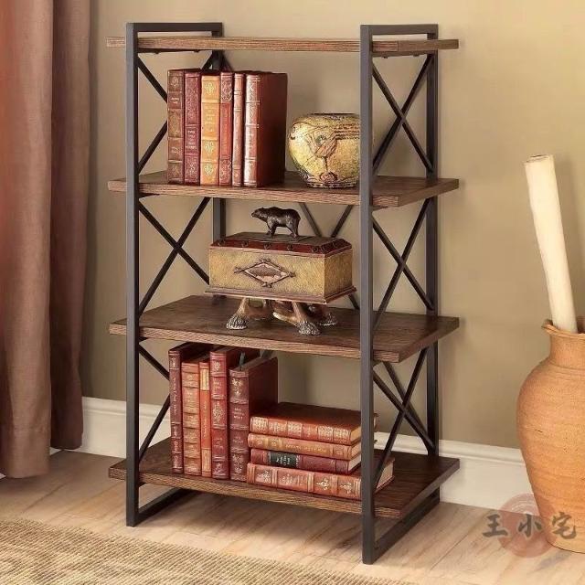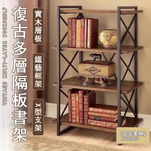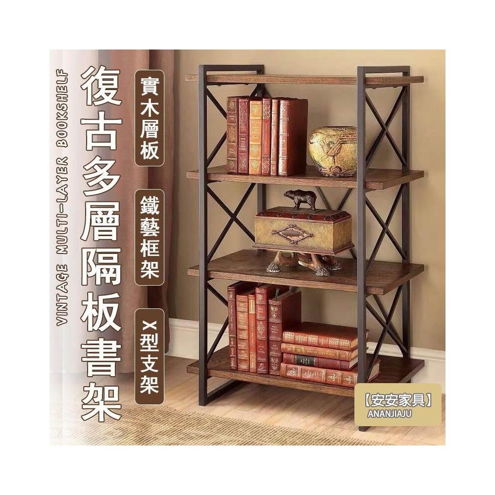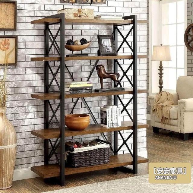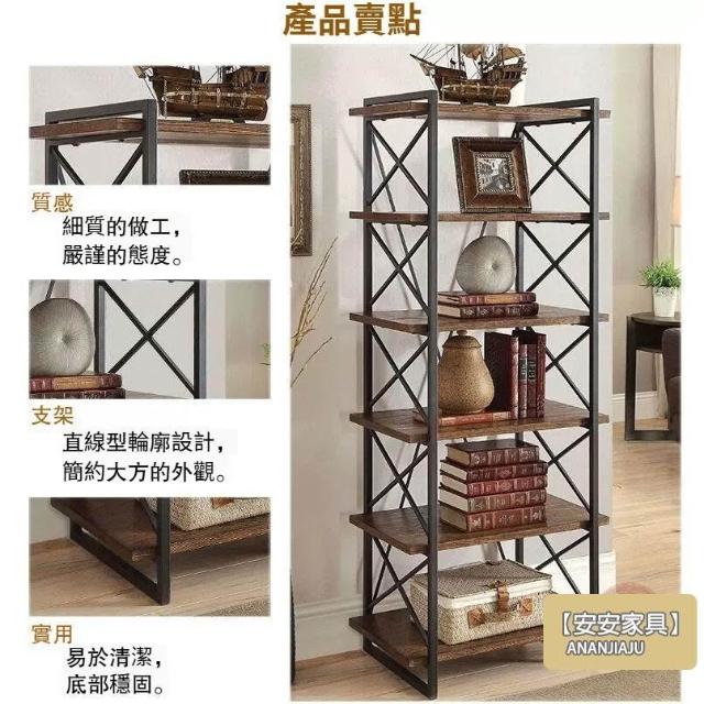 安安家具工業風置物架 鐵藝置物架 落地書架 多層書架 客廳書架 書籍收納架 鐵藝陳列架陳列 多層展示架OH2422