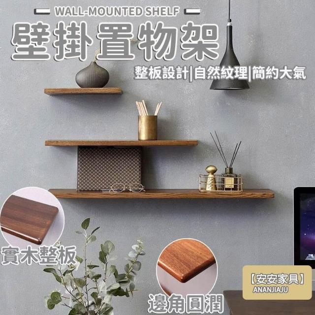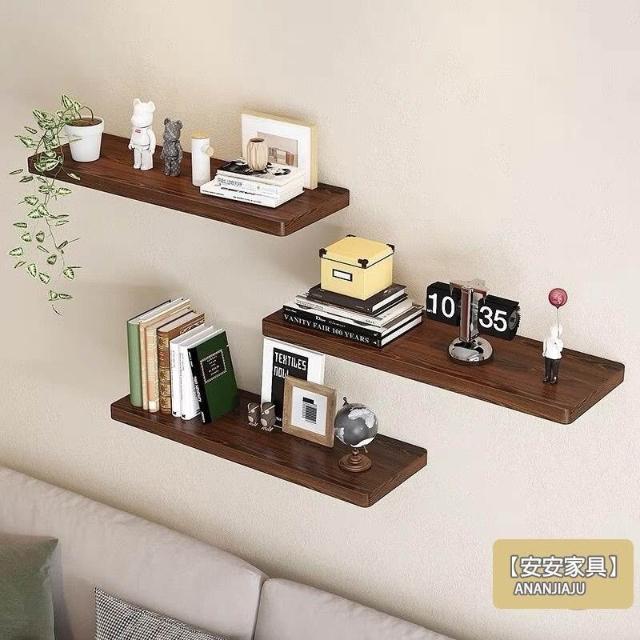安安家具壁掛置物架 客廳墻上置物架 實木壁掛架 客廳壁掛置物層架 原木牆上書架 牆上收納架 小戶型壁掛裝飾架 TEH