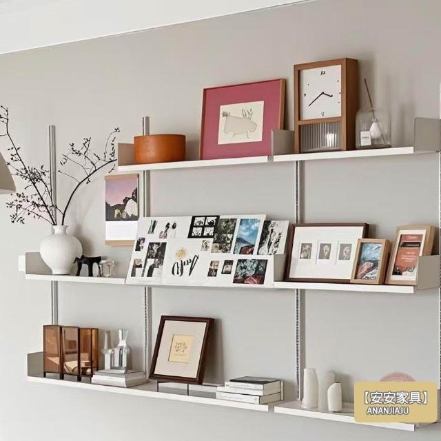 安安家具掛墻置物架 隔板置物架 墻面鐵藝收納架 懸浮書架 組合置物架 墻面裝飾收納櫃 客廳置物架 軌道設計 OH
