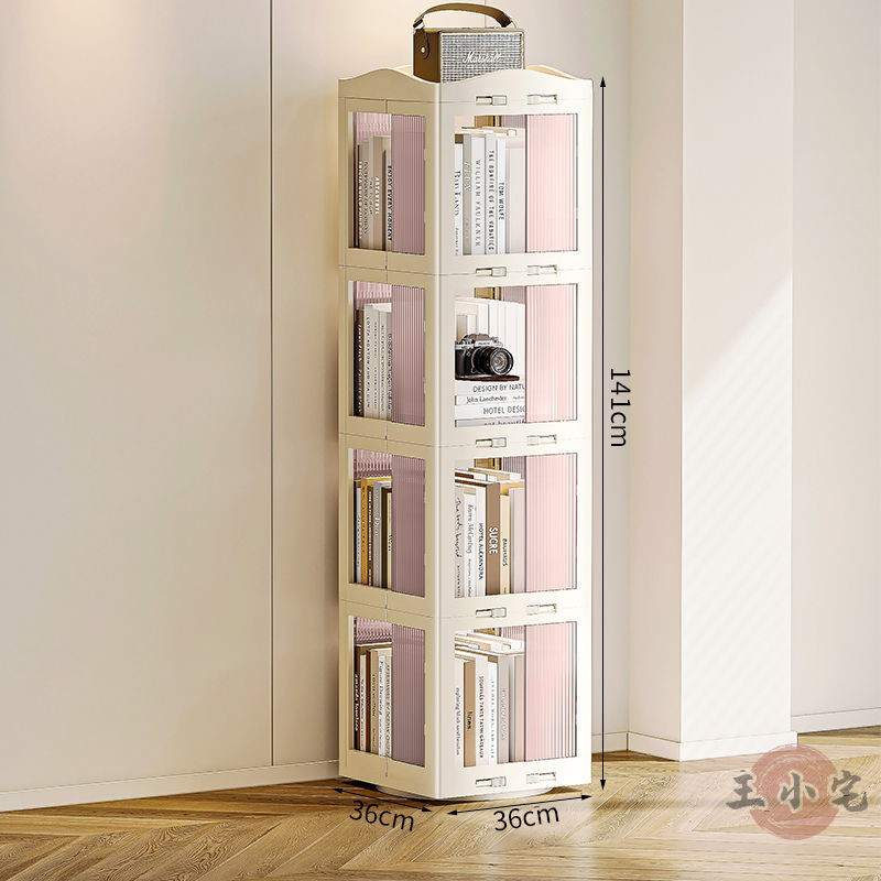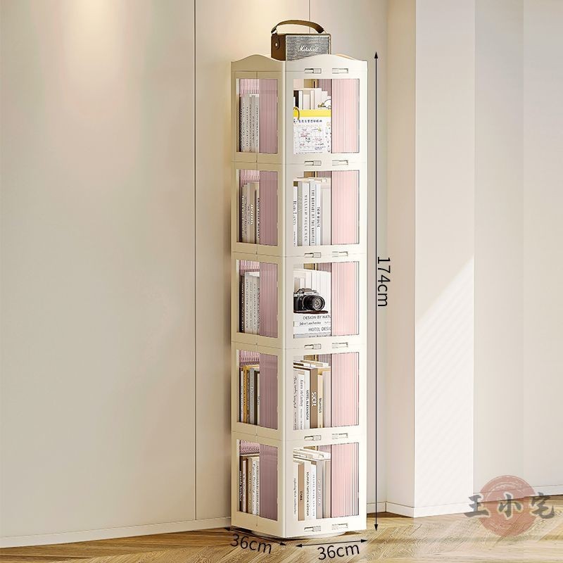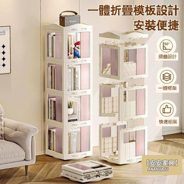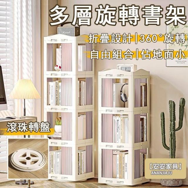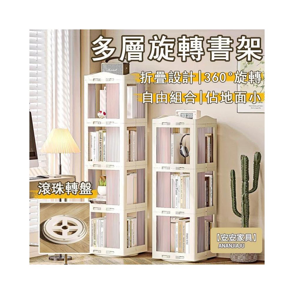 安安家具360°旋轉書架 落地書架 防塵書櫃 書房書架 書籍收納架 學生書架 多層書櫃 多功能折疊書架OH1929