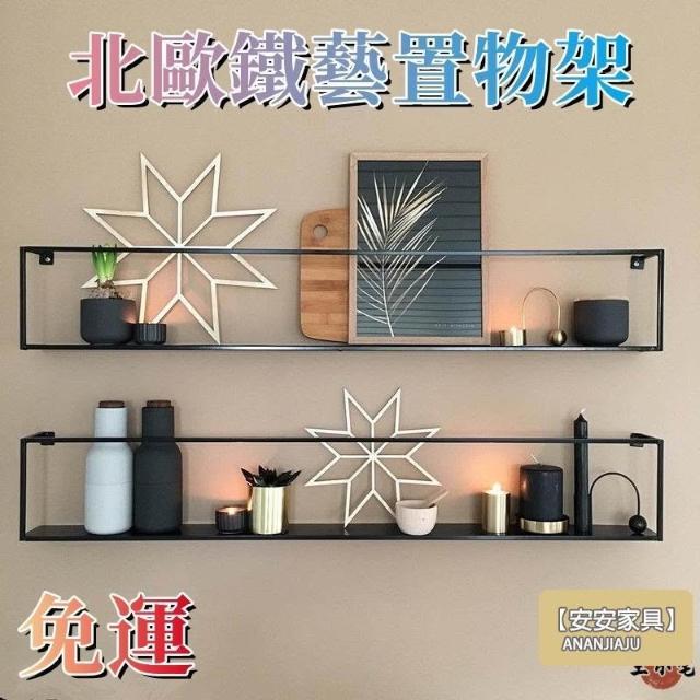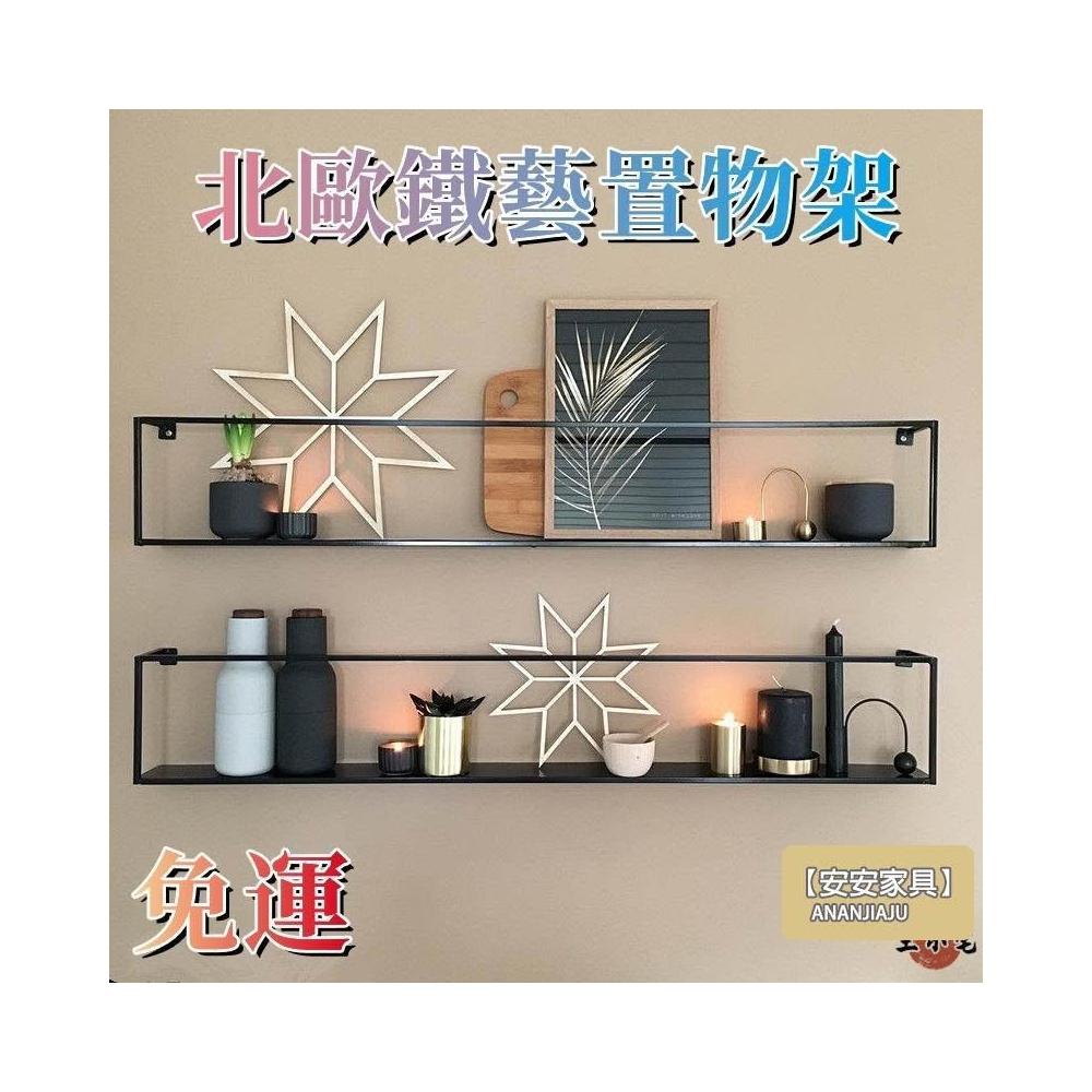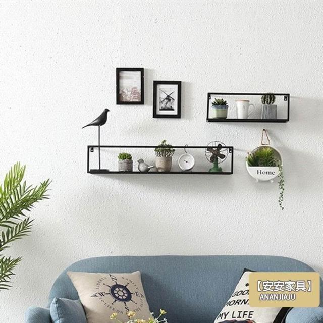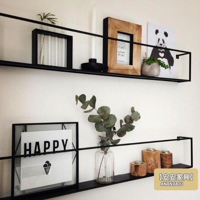 安安家具北歐鐵藝置物架 牆上置物架 免打孔 臥室房間客廳沙發餐廳背景電視墻面壁掛裝飾收納架 一字隔板層板 書架XH5