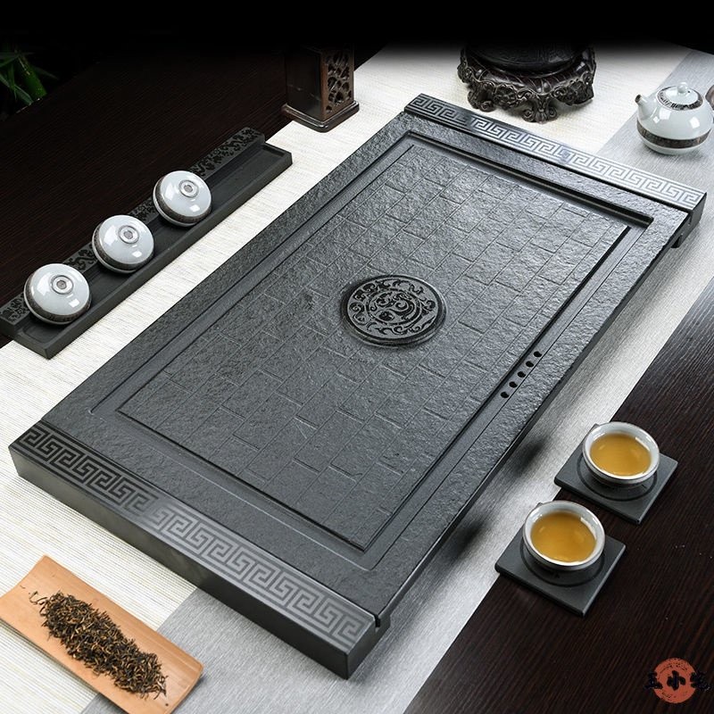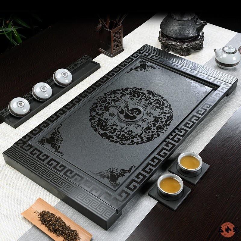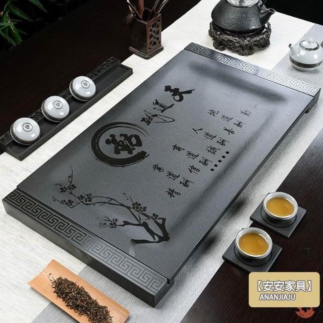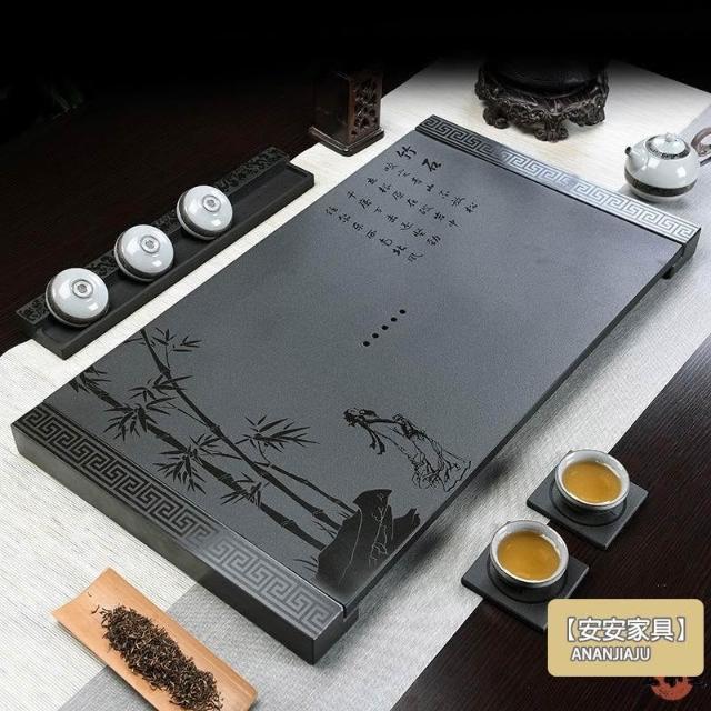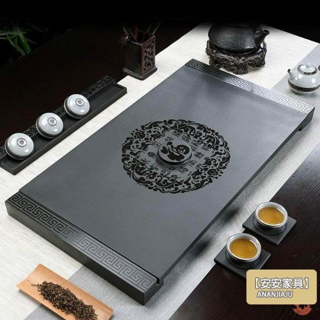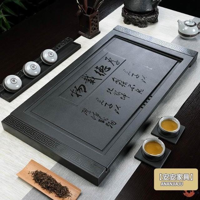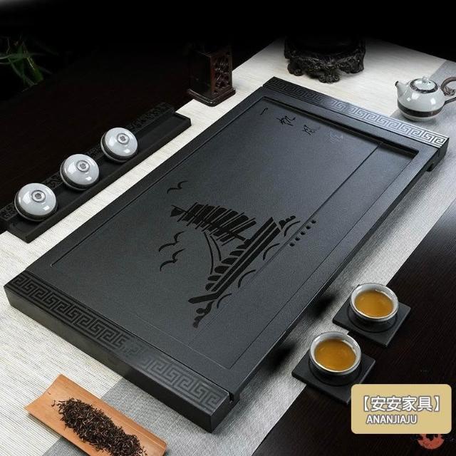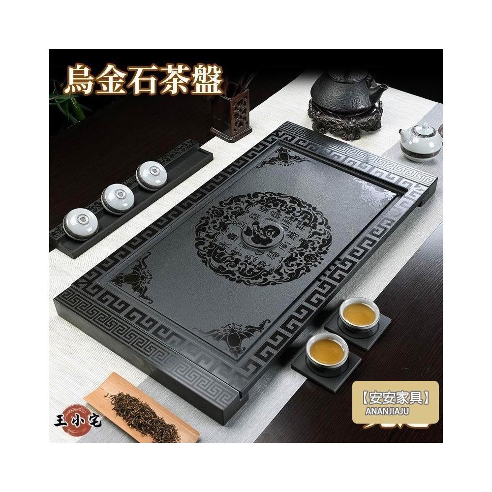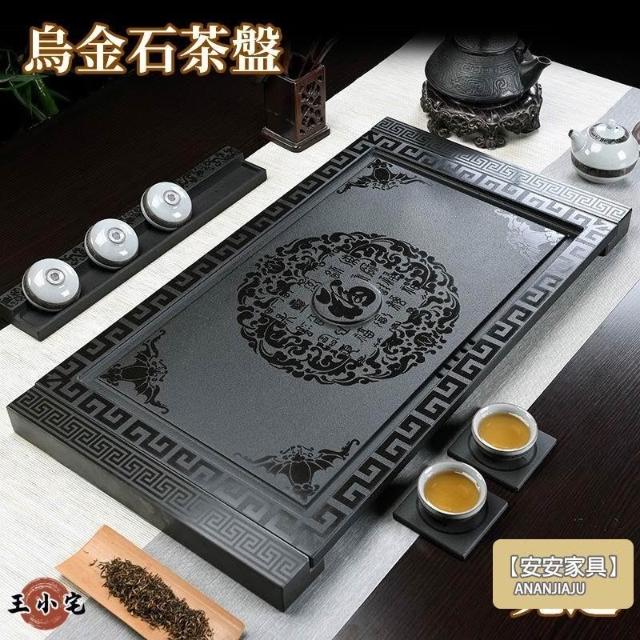 安安家具烏金石茶盤 整塊天然烏金石茶臺 簡約家用長方形大小號石頭黑金石茶臺茶具茶盤 客廳功夫茶臺 茶具托盤定制XH